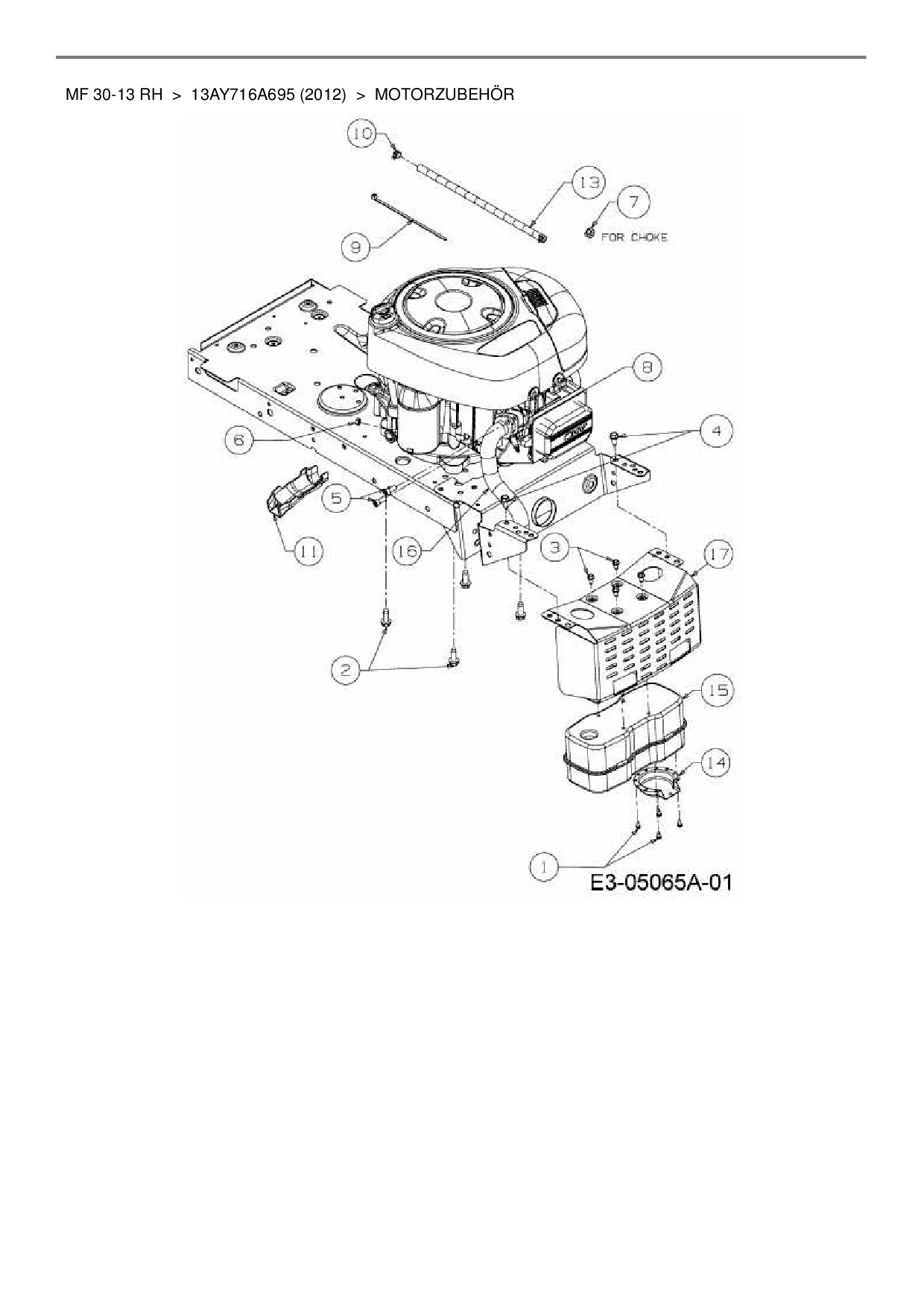 Ersatzteile für Rasentraktor Massey Ferguson MF 30-13 RH aus der Zeichnung Motorzubehör: