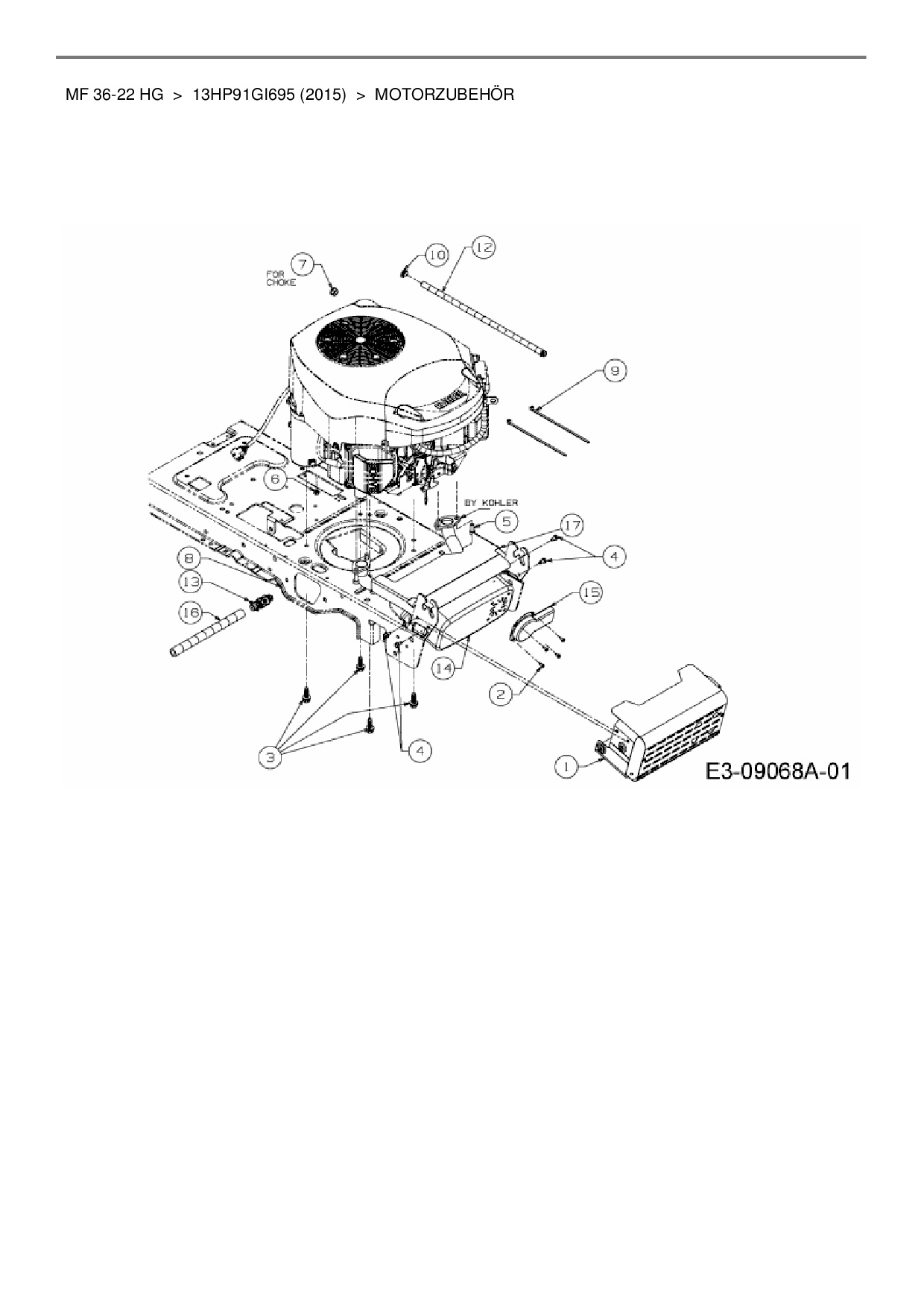 Ersatzteile für Rasentraktor Massey Ferguson MF 36-22 HG aus der Zeichnung Motorzubehör: