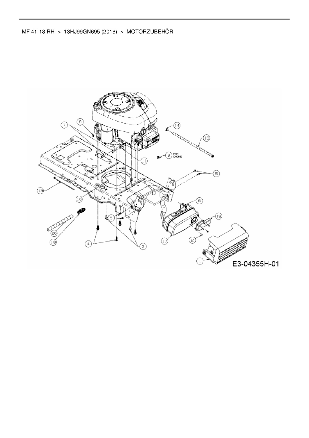 Ersatzteile für Rasentraktor Massey Ferguson MF 41-18 RH aus der Zeichnung Motorzubehör: