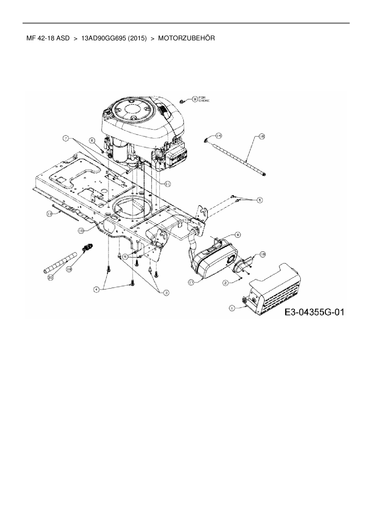 Ersatzteile für Rasentraktor Massey Ferguson MF 42-18 ASD aus der Zeichnung Motorzubehör: