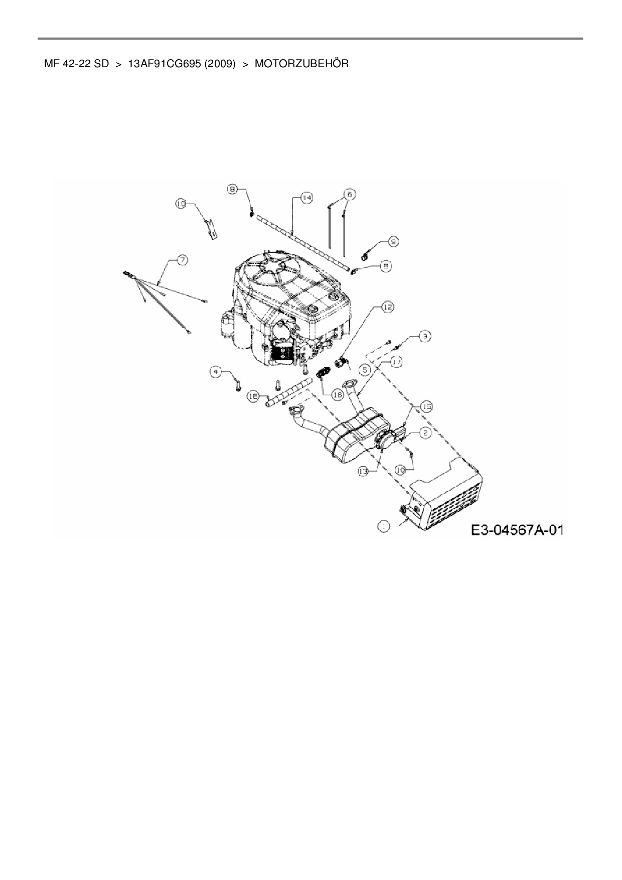 Ersatzteile für Rasentraktor Massey Ferguson MF 42-22 SD aus der Zeichnung Motorzubehör: