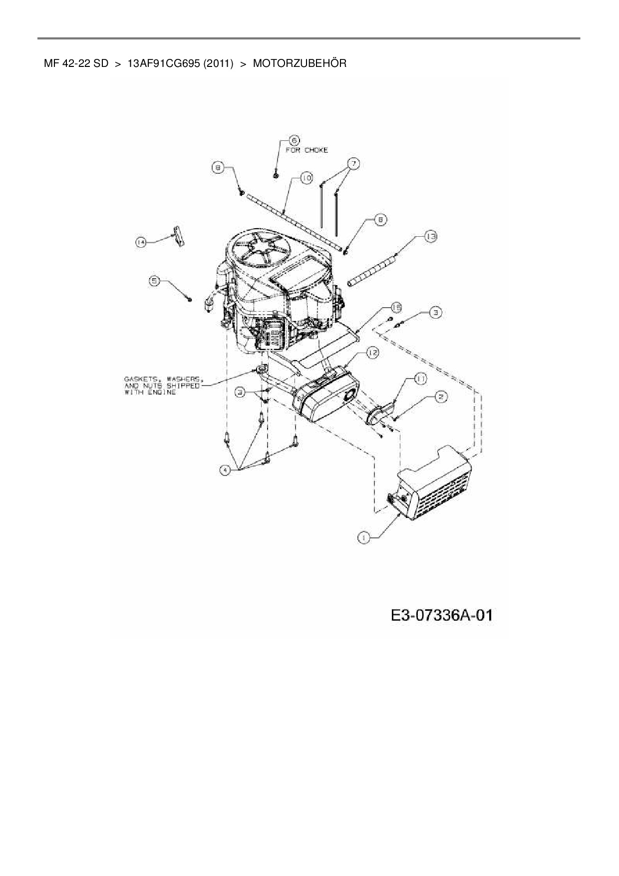 Ersatzteile für Rasentraktor Massey Ferguson MF 42-22 SD aus der Zeichnung Motorzubehör: