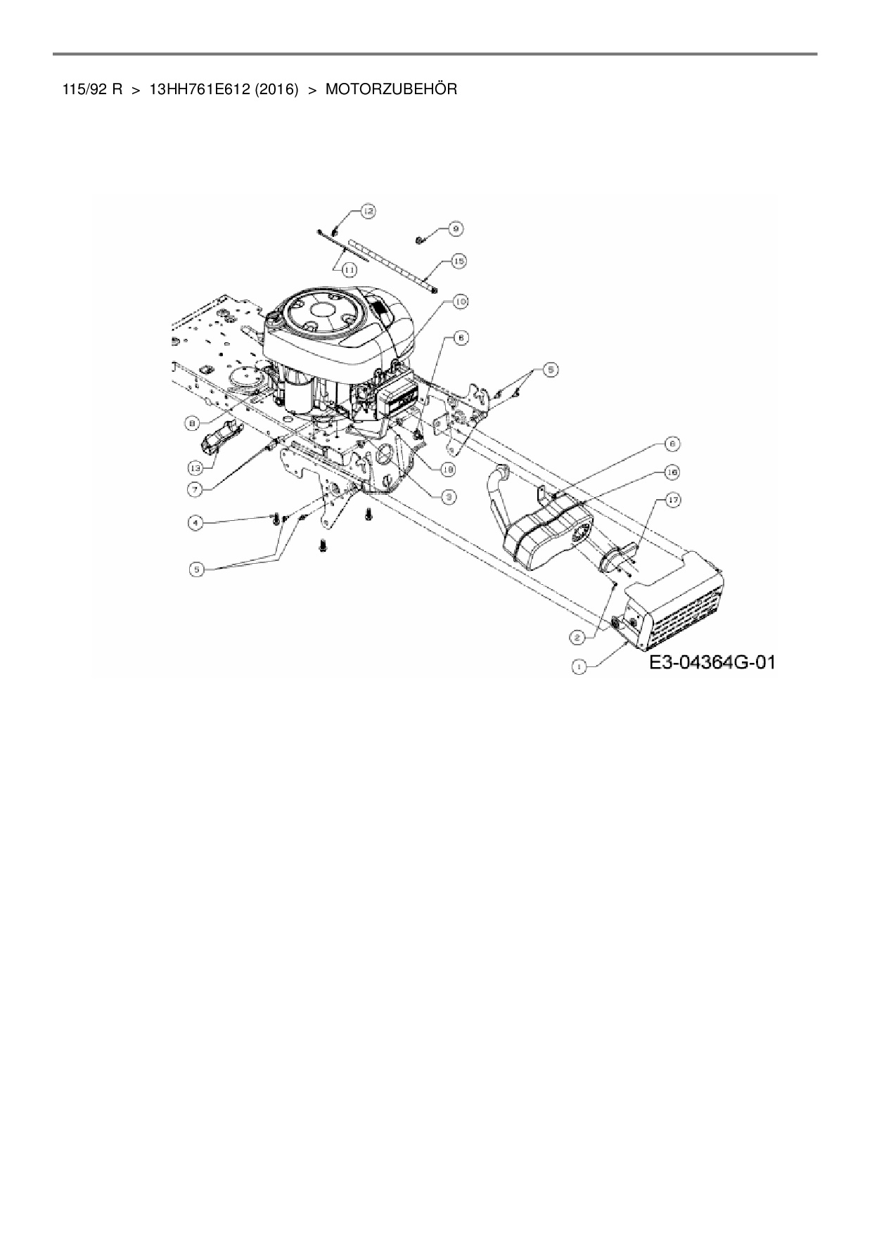 Zeichnung für MTD Rasentraktor 115/92 R mit der Geräte-Artikelnr. 13HH761E612 ab Baujahr 2016: