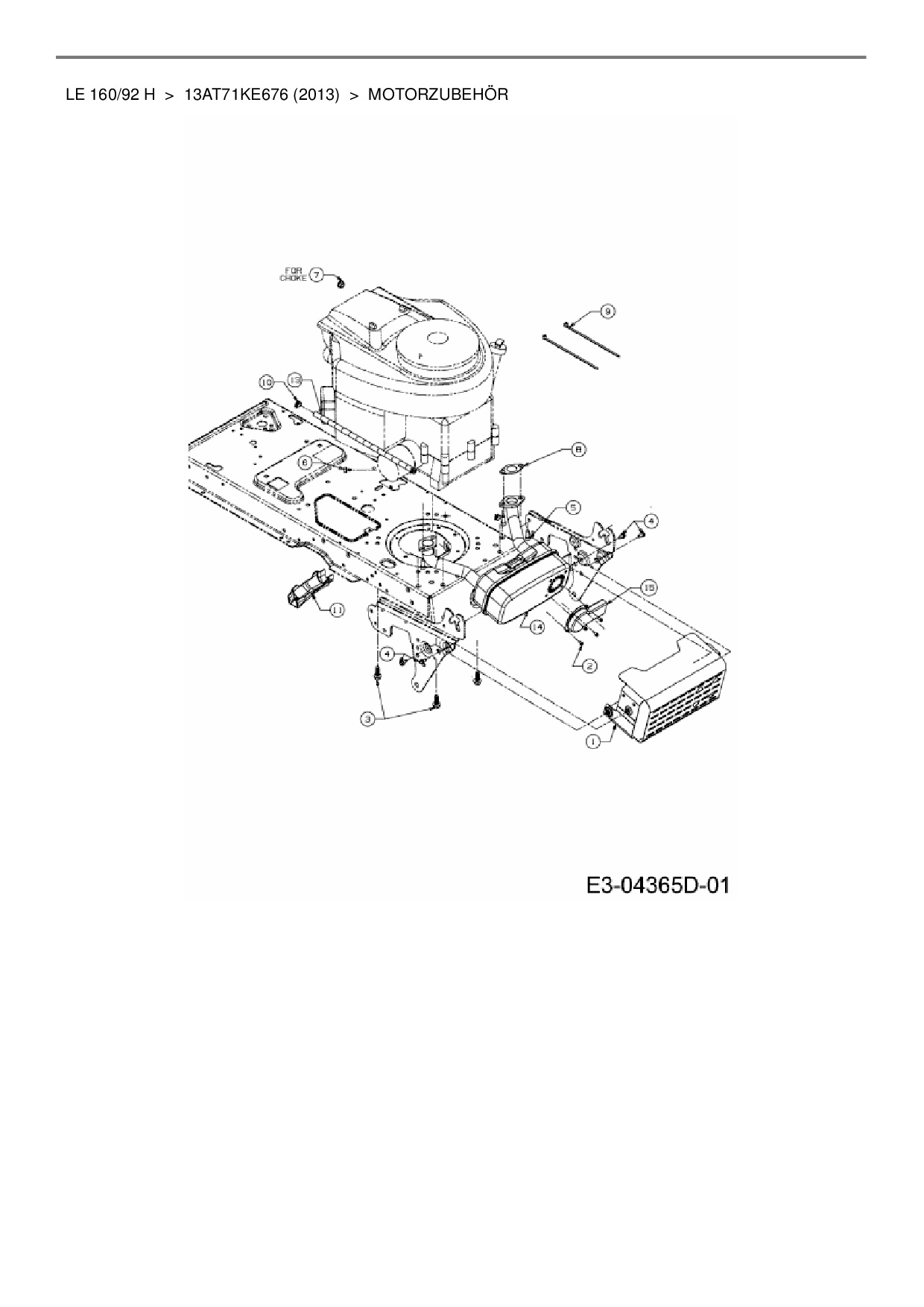 Ersatzteile für Rasentraktor MTD LE 160/92 H aus der Zeichnung Motorzubehör: