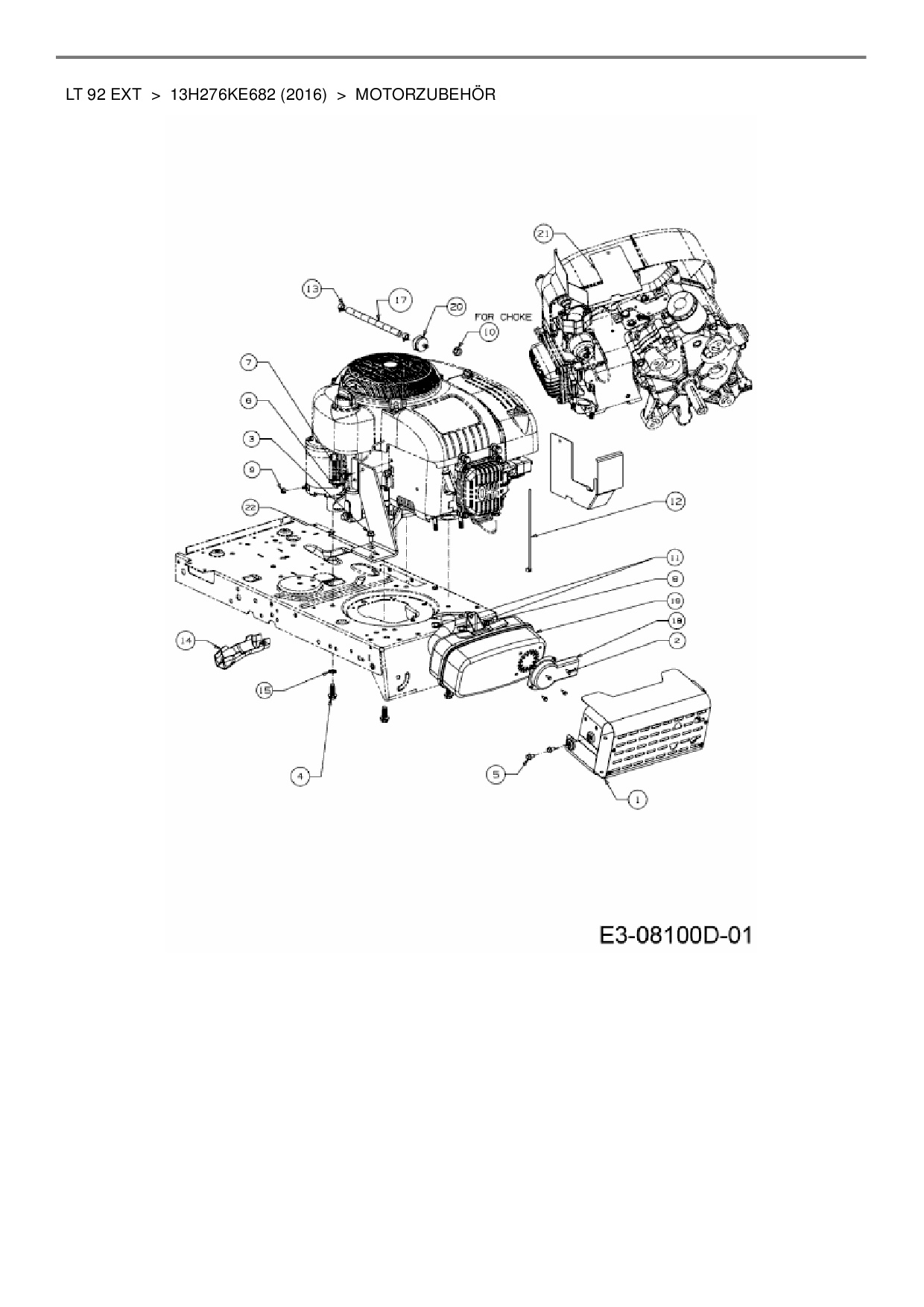 Ersatzteile für Rasentraktor MTD LT 92 EXT aus der Zeichnung Motorzubehör: