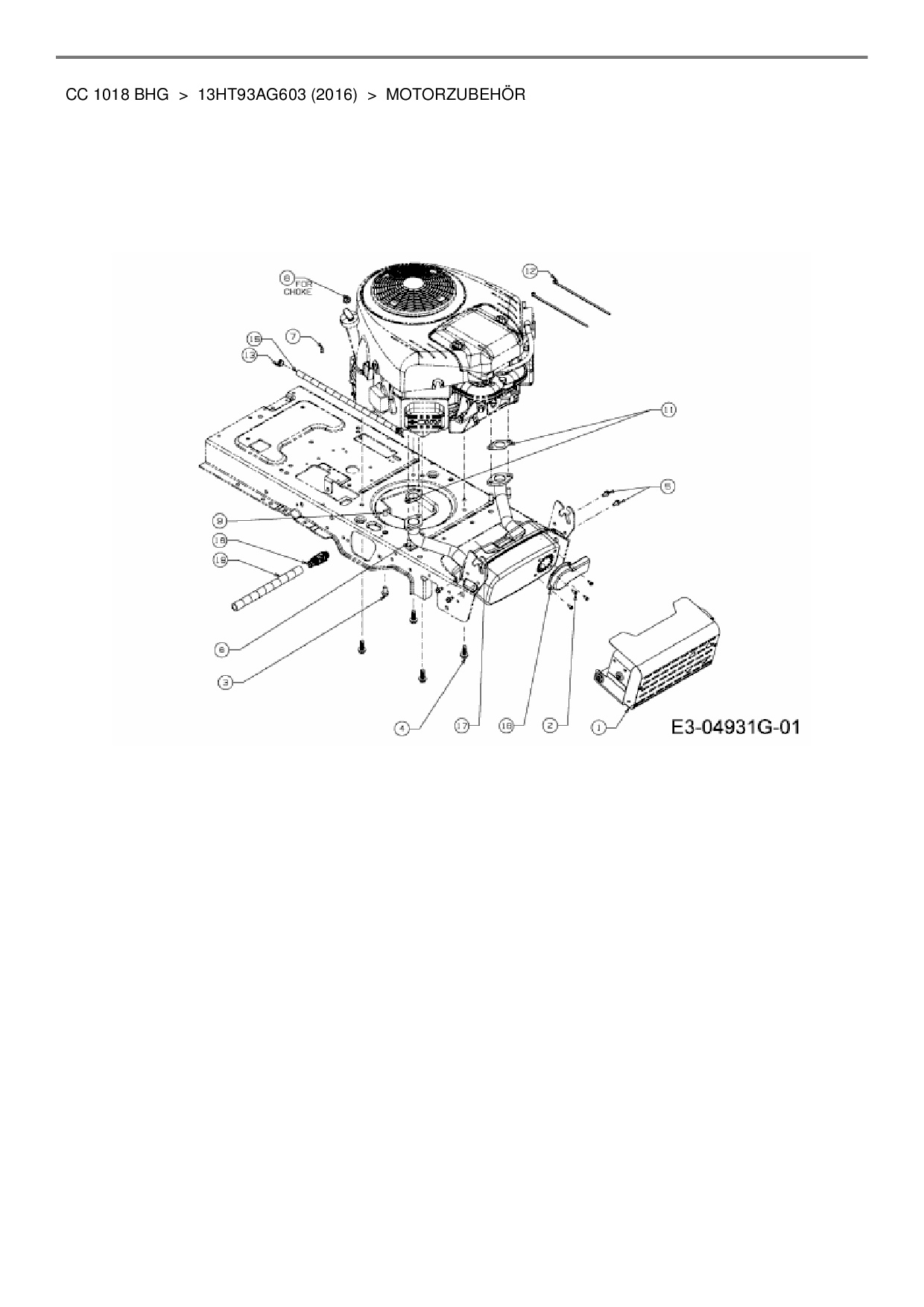 Download Ersatzteil-Zeichnung Cub Cadet CC 1018 BHG Zeichnung Motorzubehör (PDF-Format)