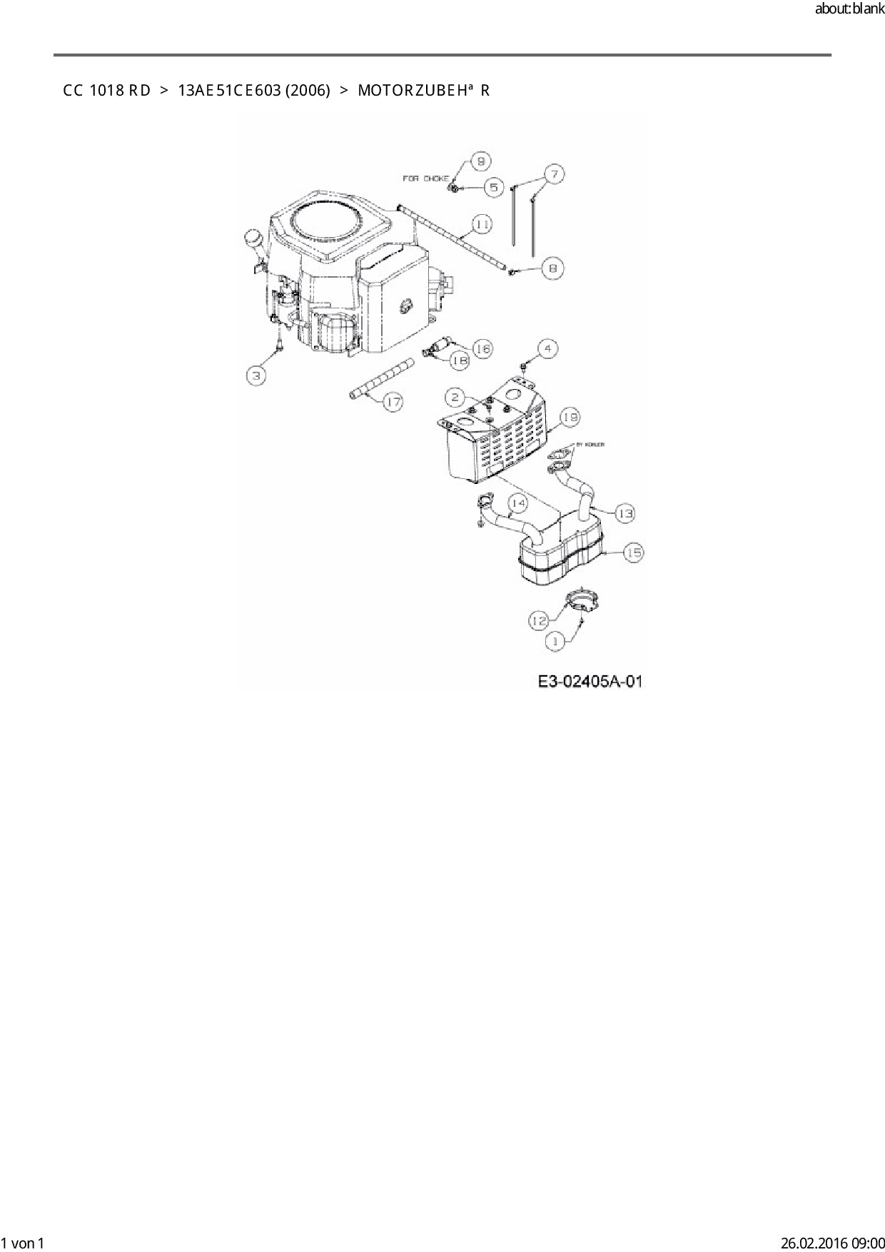 Ersatzteile für Rasentraktor Cub Cadet CC 1018 RD aus der Zeichnung Motorzubehör: