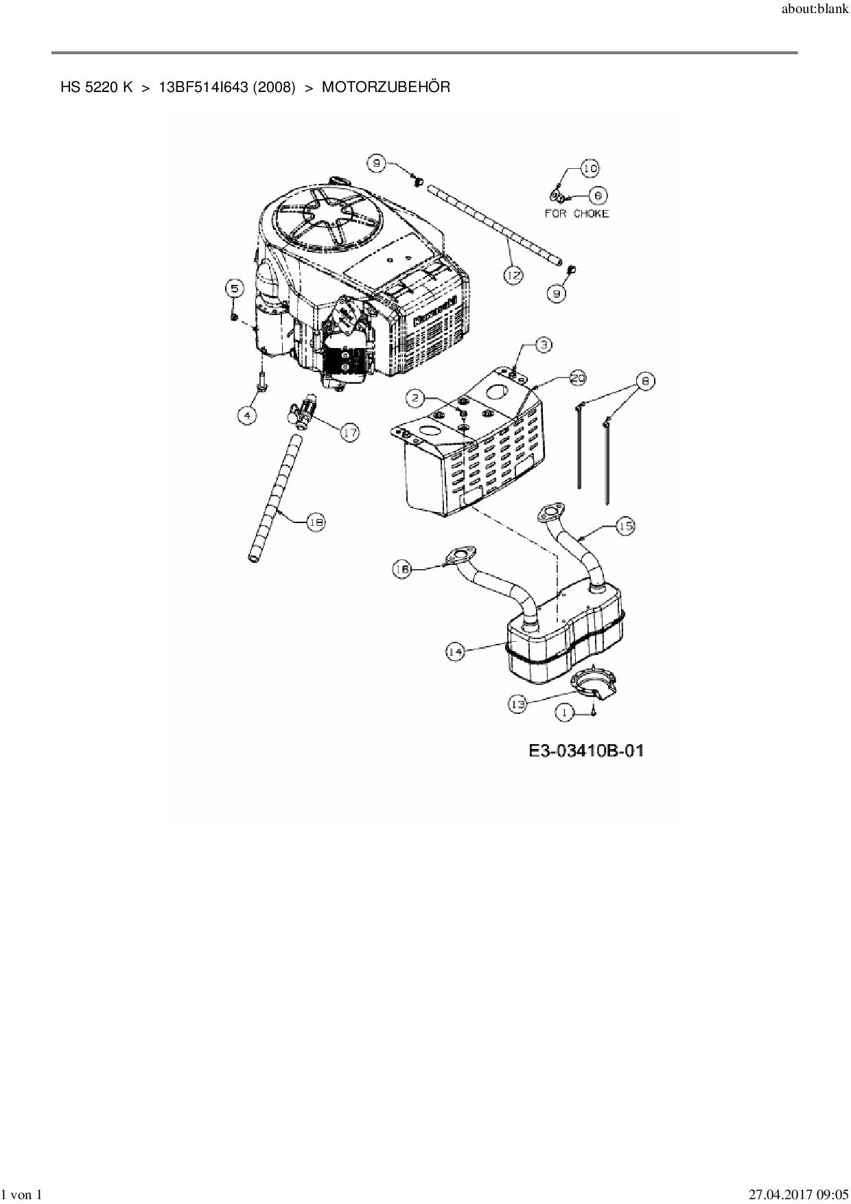 Ersatzteile für Rasentraktor Yard-Man HS 5220 K aus der Zeichnung Motorzubehör: