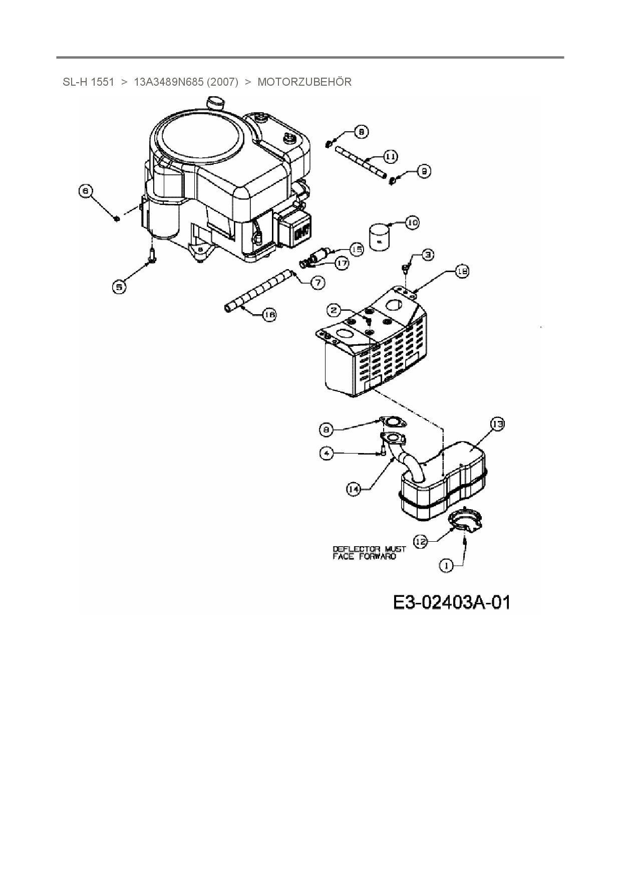 Ersatzteile für Rasentraktor Sunline SL-H 1551 aus der Zeichnung Motorzubehör: