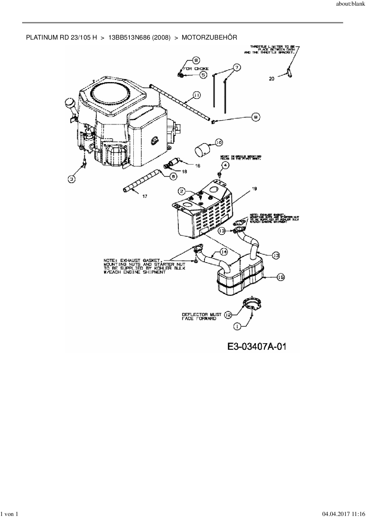 Ersatzteile für Rasentraktor MTD Platinum RD 23/105 H aus der Zeichnung Motorzubehör: