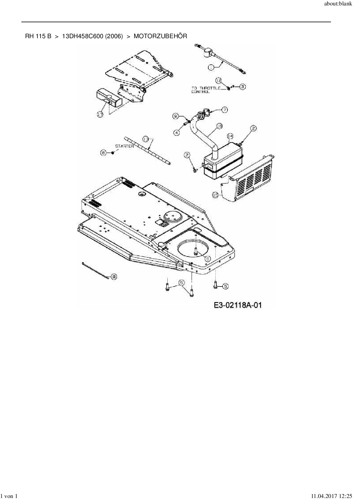 Ersatzteile für Rasentraktor MTD RH 115 B aus der Zeichnung Motorzubehör: