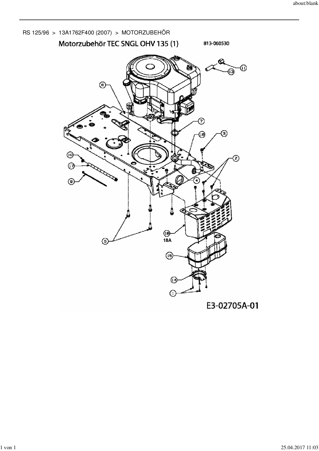 Zeichnung für MTD Rasentraktor RS 125/96 mit der Geräte-Artikelnr. 13A1762F400 ab Baujahr 2007: