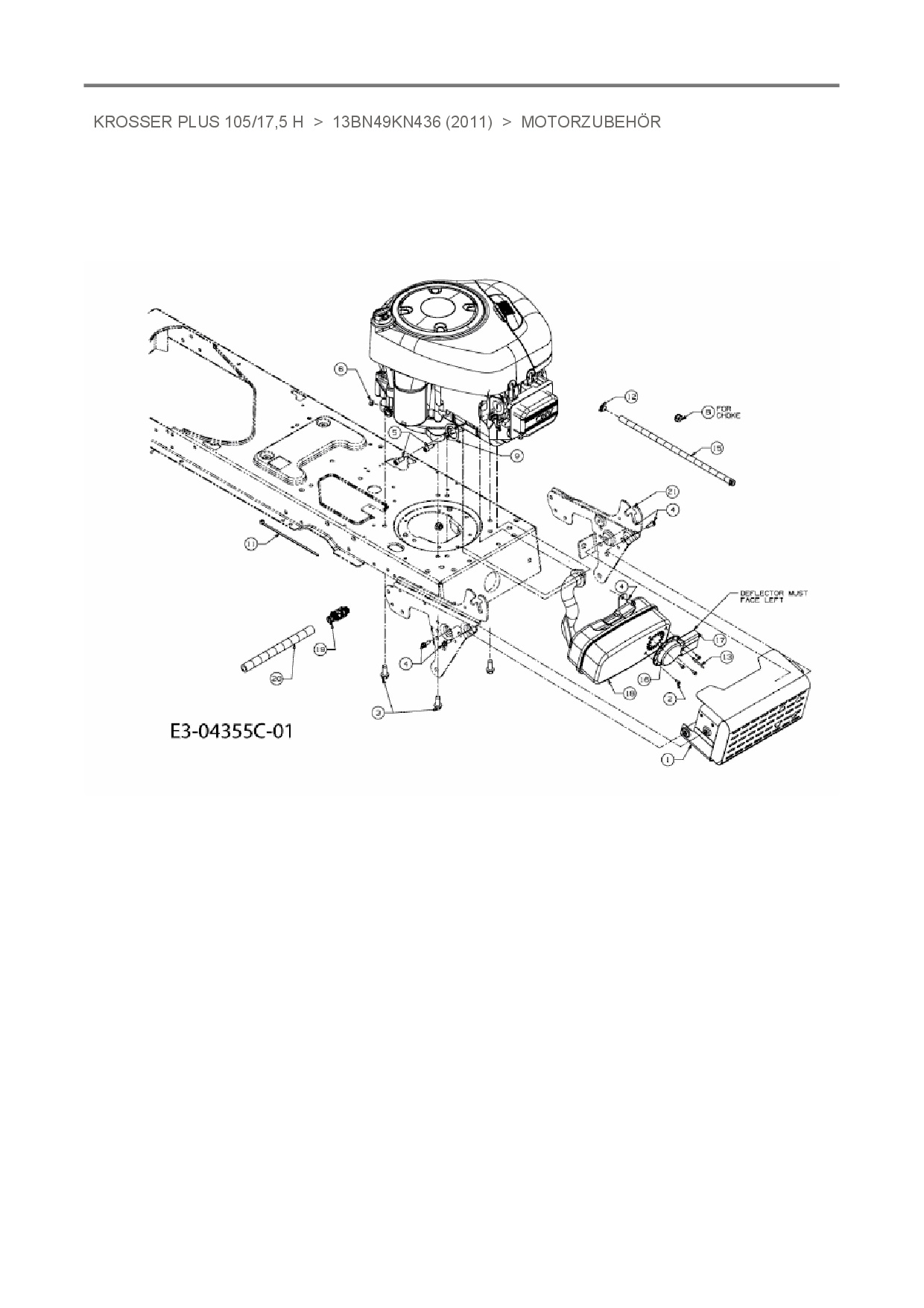 Zeichnung für Oleo-Mac Rasentraktor Krosser Plus 105/17,5 H mit der Geräte-Artikelnr. 13BN49KN436 ab Baujahr 2011: