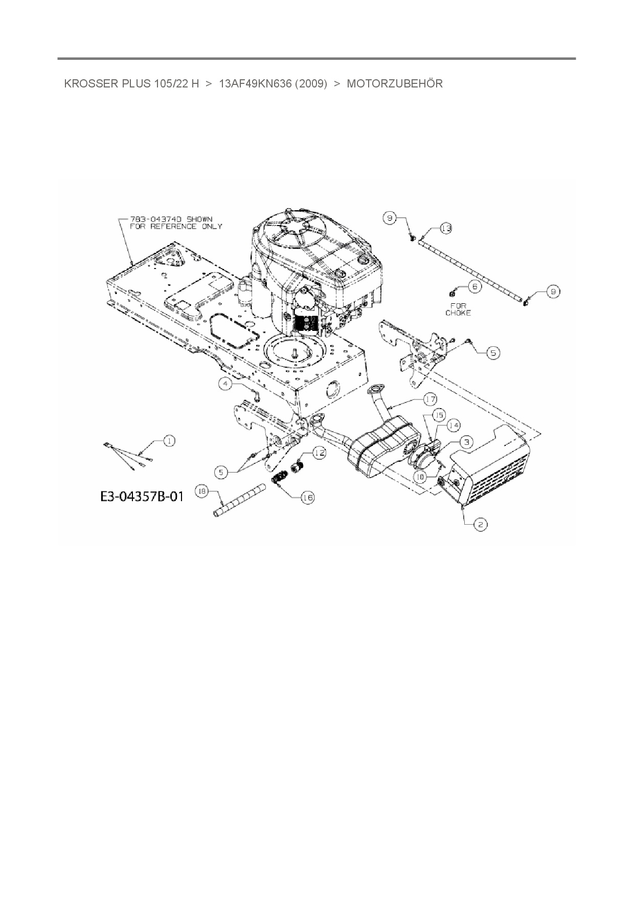 Zeichnung für Oleo-Mac Rasentraktor Krosser Plus 105/22 H mit der Geräte-Artikelnr. 13AF49KN636 ab Baujahr 2009: