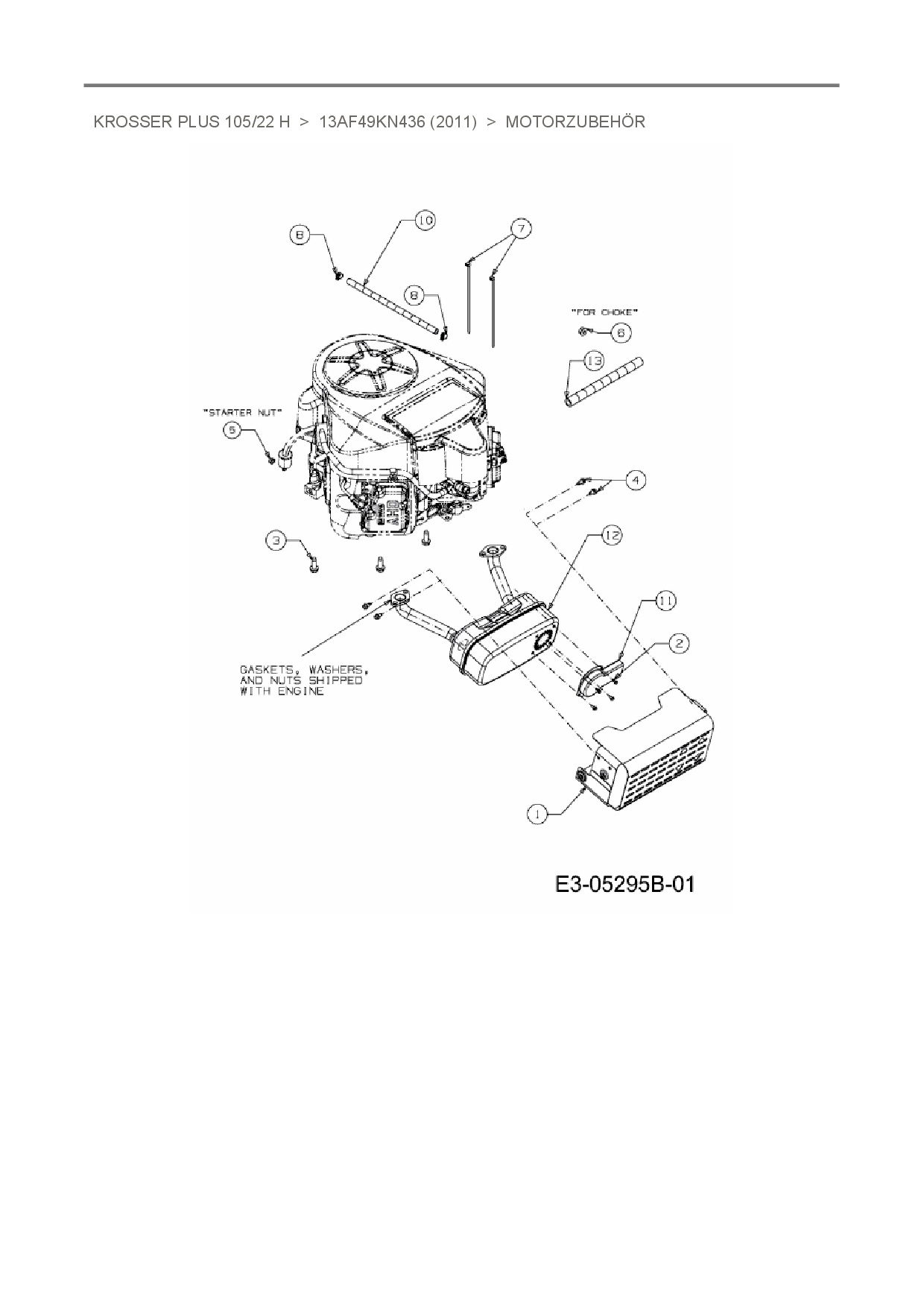 Zeichnung für Oleo-Mac Rasentraktor Krosser Plus 105/22 H mit der Geräte-Artikelnr. 13AF49KN436 ab Baujahr 2011: