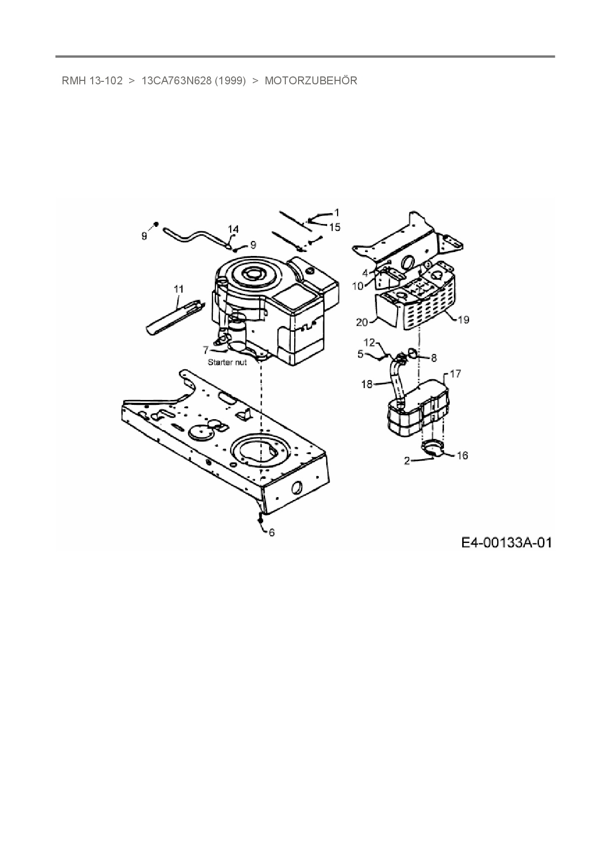 Ersatzteile für Rasentraktor Raiffeisen RMH 13-102 aus der Zeichnung Motorzubehör: