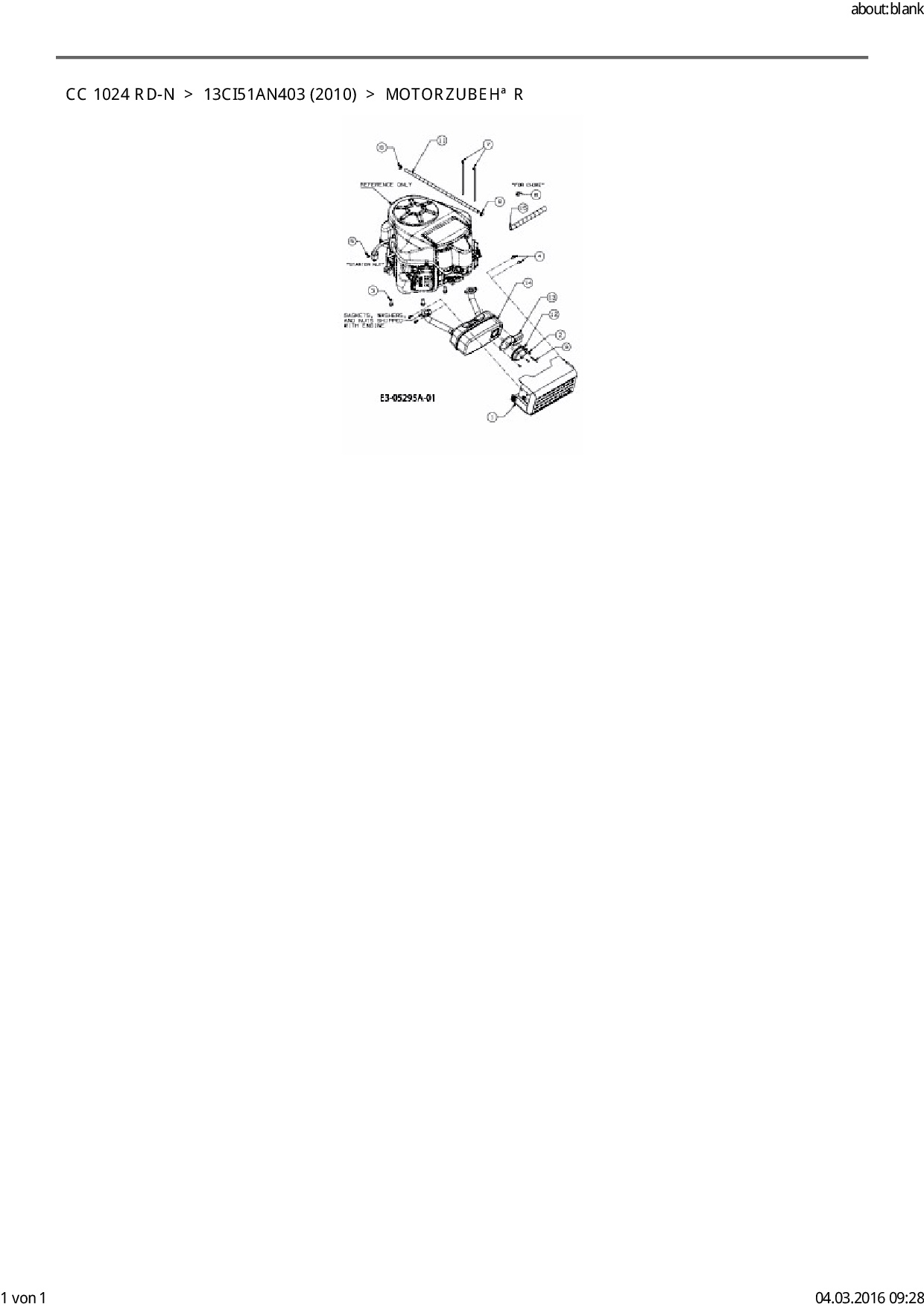 Ersatzteile für Rasentraktor Cub Cadet CC 1024 RD-N aus der Zeichnung Motorzubehör: