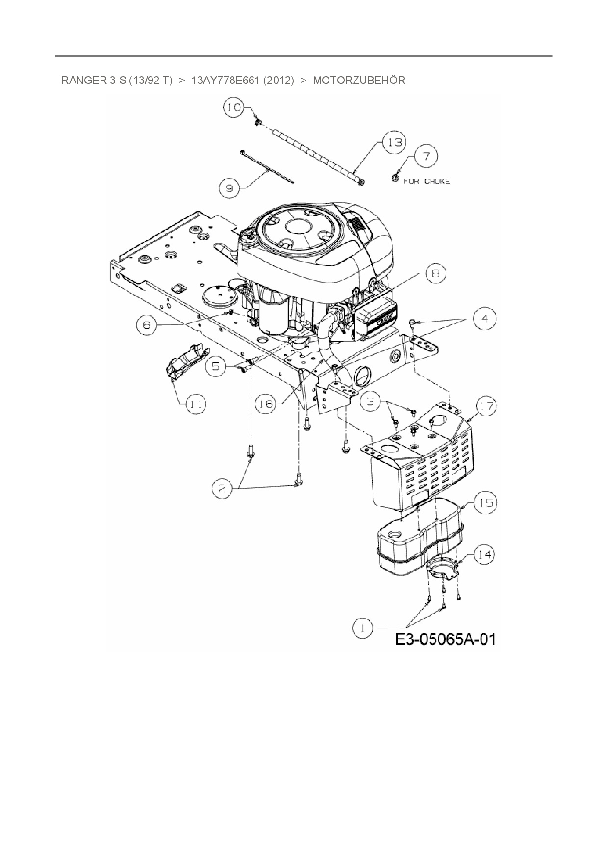 Ersatzteile für Rasentraktor Ranger Ranger 3 S (13/92 T) aus der Zeichnung Motorzubehör: