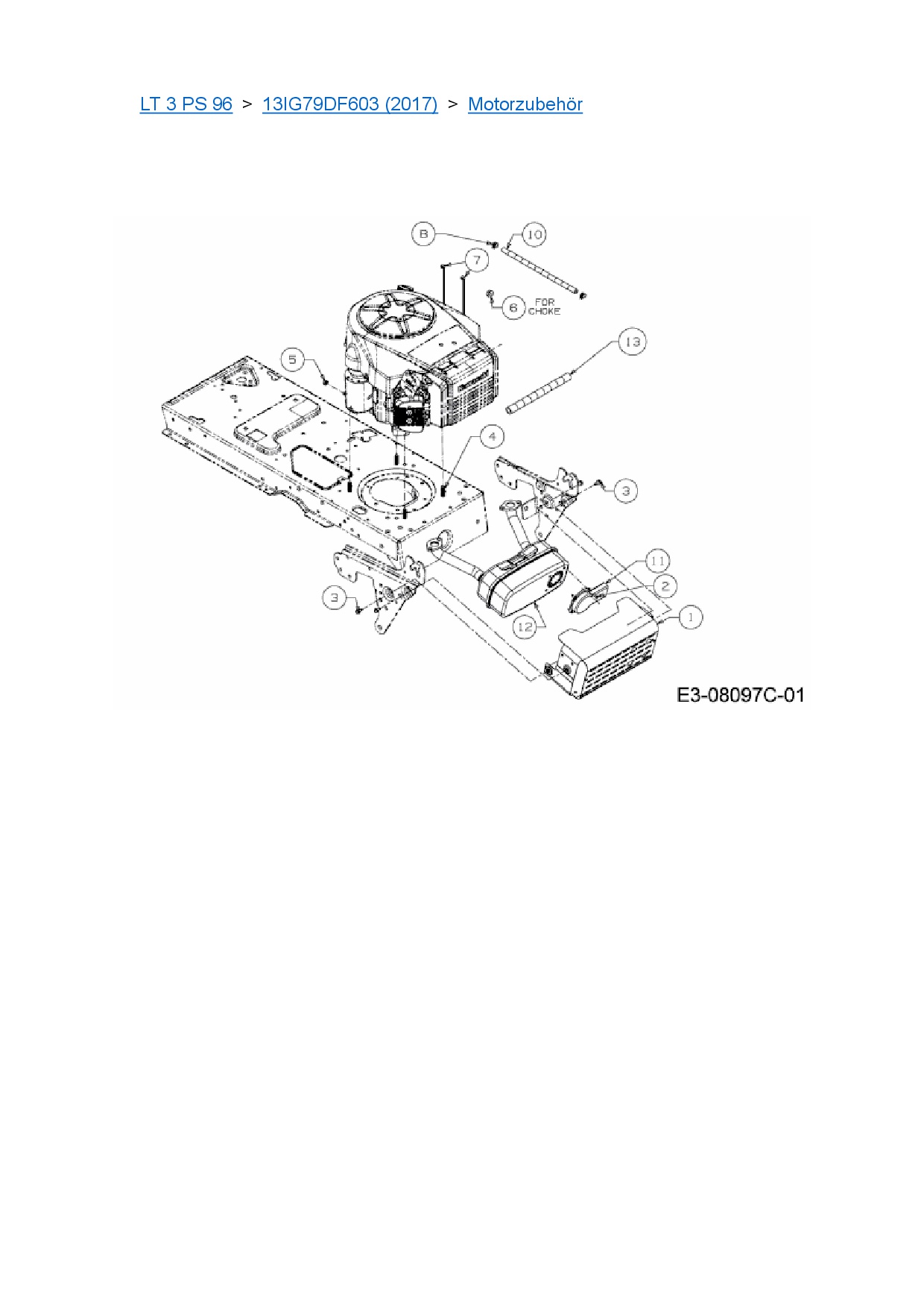 Ersatzteile für Rasentraktor Cub Cadet LT 3 PS 96 aus der Zeichnung Motorzubehör: