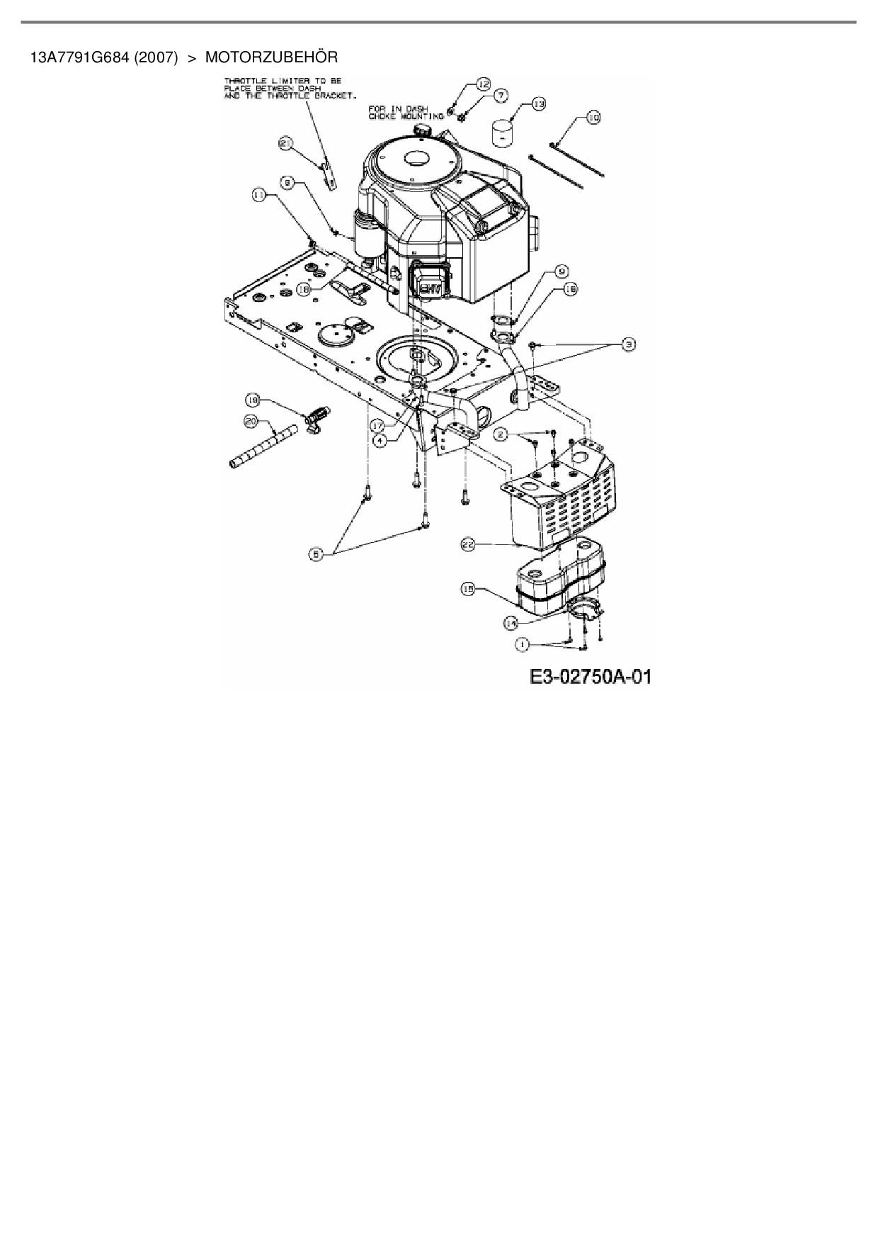 Zeichnung für Bolens Rasentraktor BL 200/107 H mit der Geräte-Artikelnr. 13A7791G684 ab Baujahr 2007: