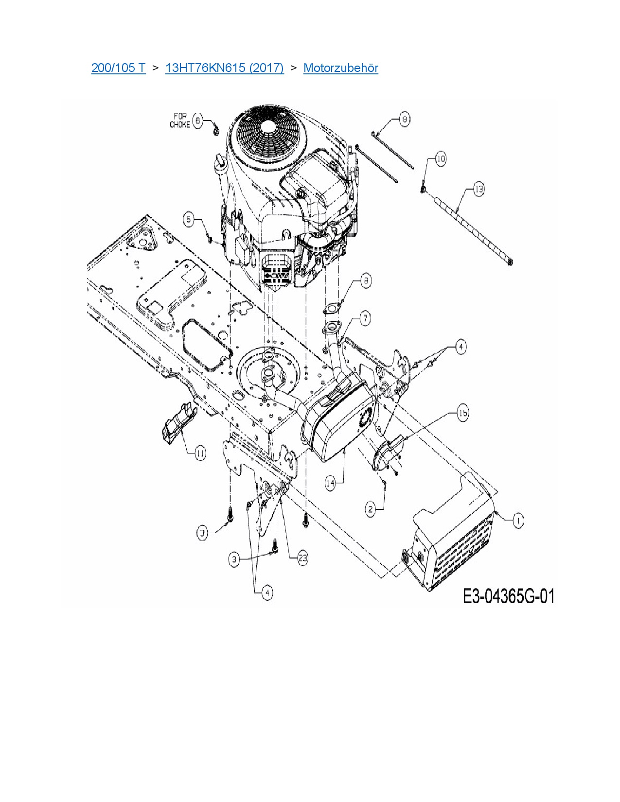 Ersatzteile für Rasentraktor MTD 200/105 T aus der Zeichnung Motorzubehör: