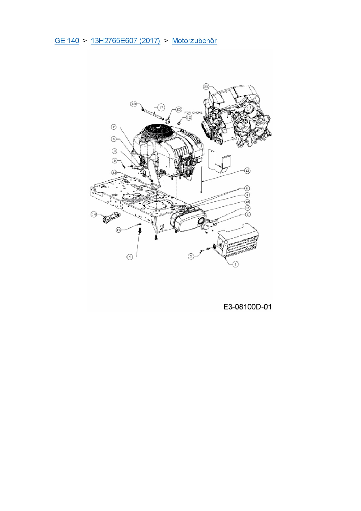 Zeichnung für Blisar Rasentraktor GE 140 mit der Geräte-Artikelnr. 13H2765E607 ab Baujahr 2017: