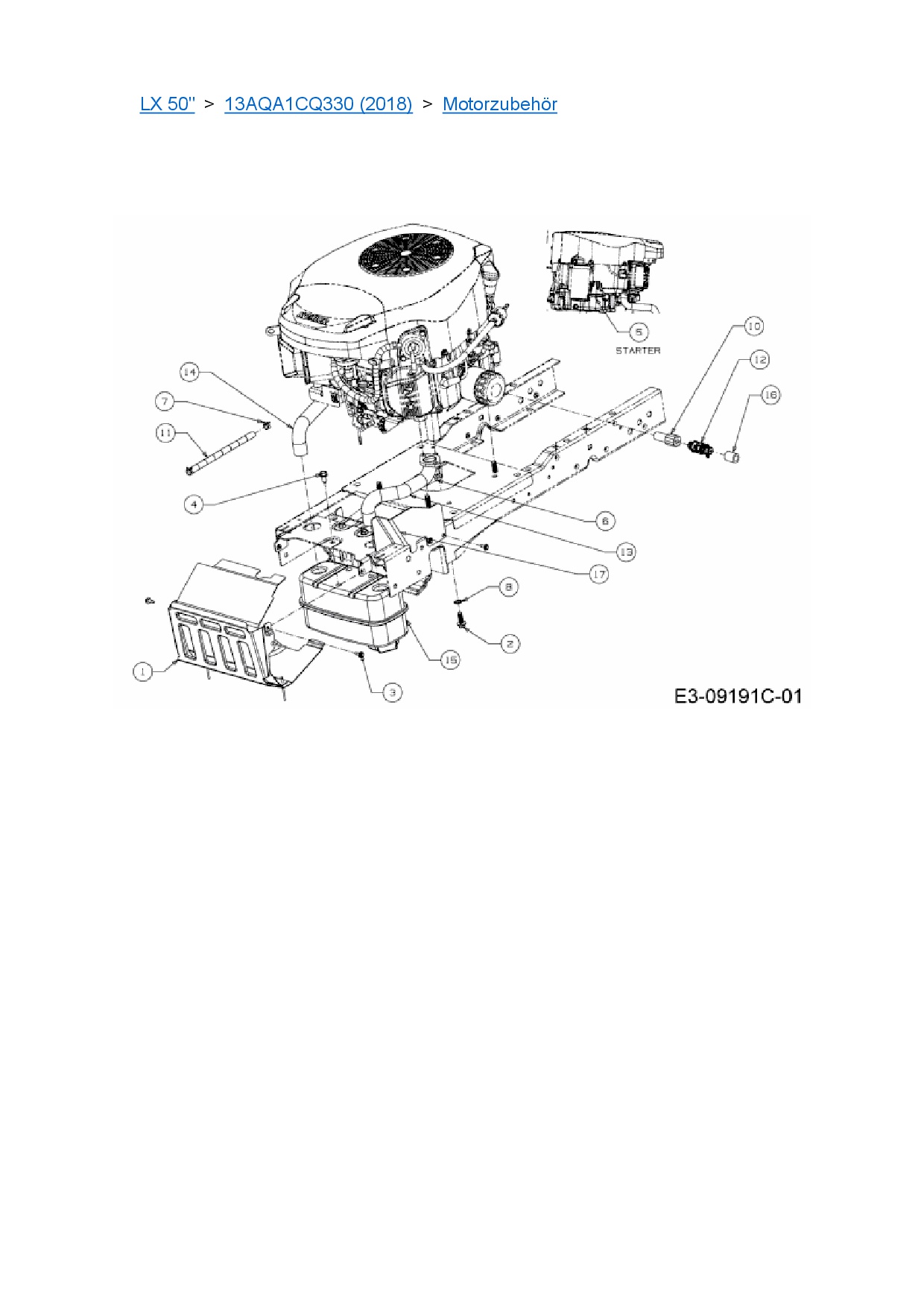 Ersatzteile für Rasentraktor Cub Cadet LX 50" aus der Zeichnung Motorzubehör: