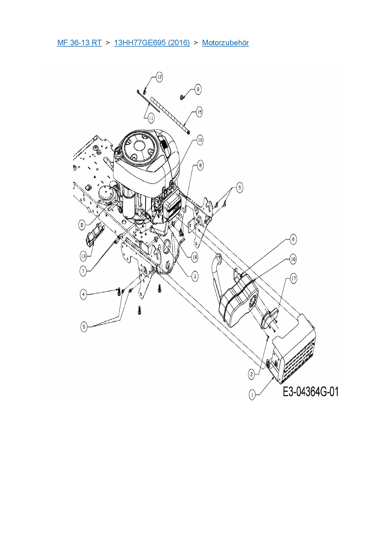 Ersatzteile für Rasentraktor Massey Ferguson MF 36-13 RT aus der Zeichnung Motorzubehör: