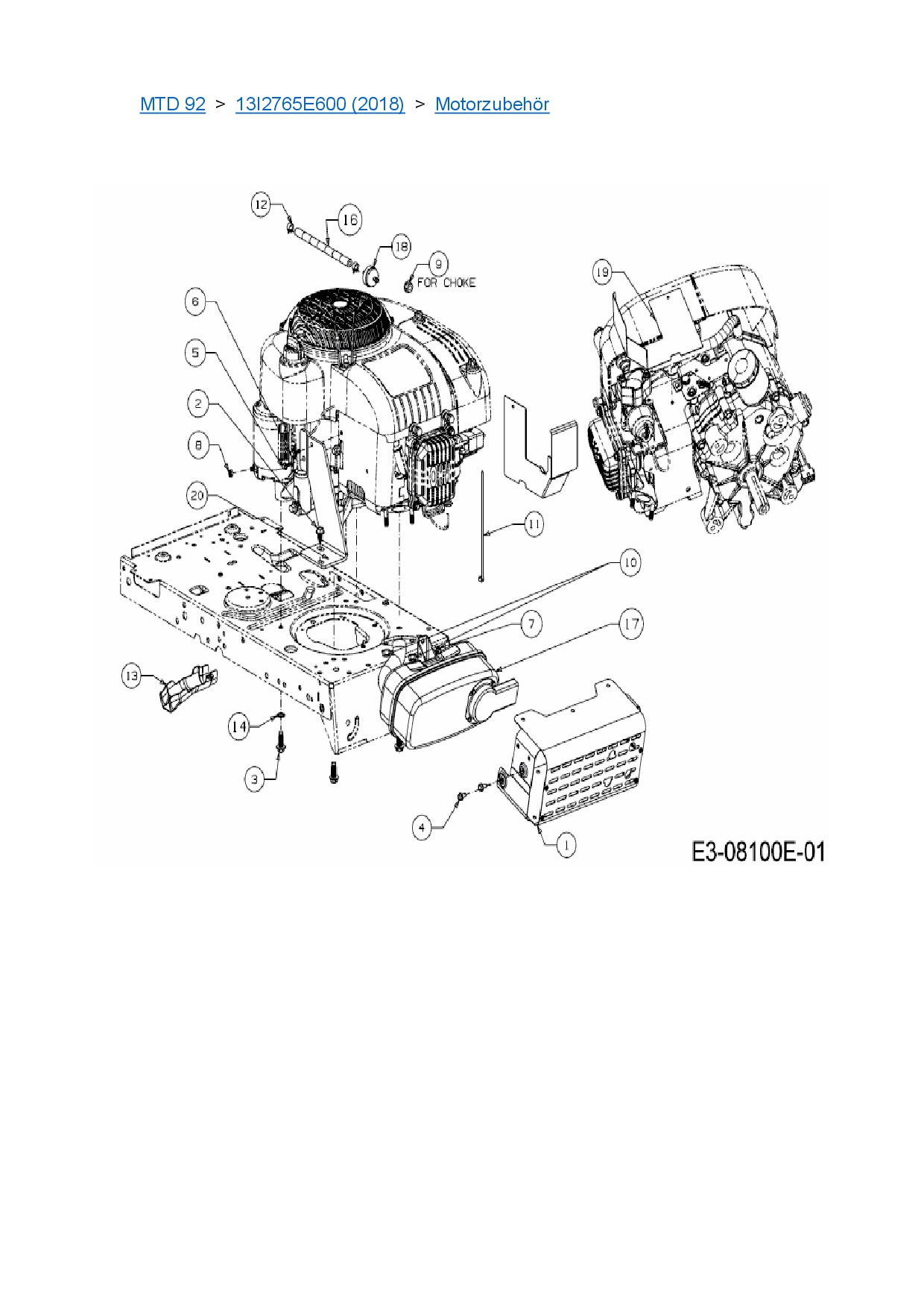 Ersatzteile für Rasentraktor MTD MTD 92 aus der Zeichnung Motorzubehör: