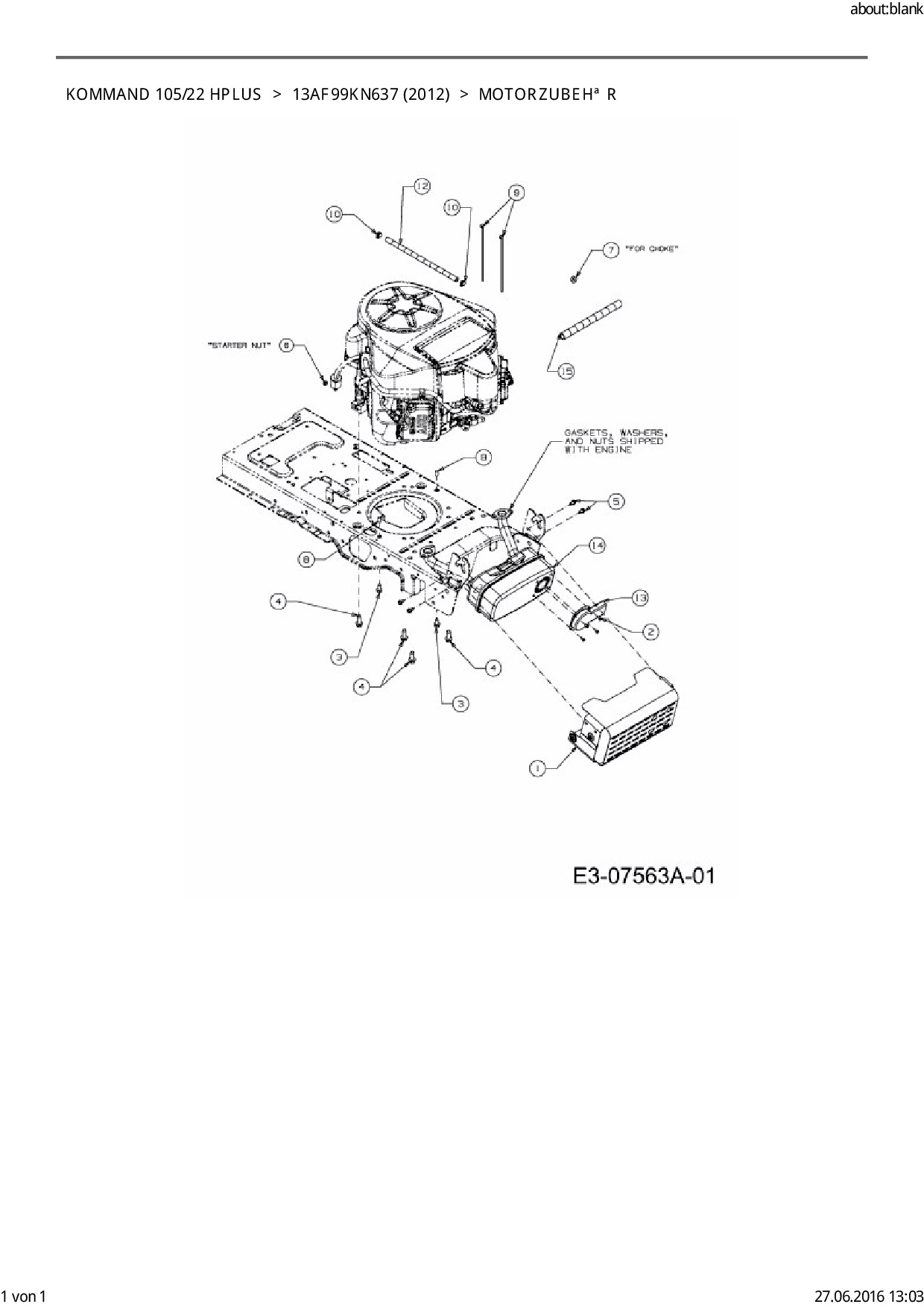 Zeichnung für EFCO Rasentraktor Kommand 105/22 HPlus mit der Geräte-Artikelnr. 13AF99KN637 ab Baujahr 2012: