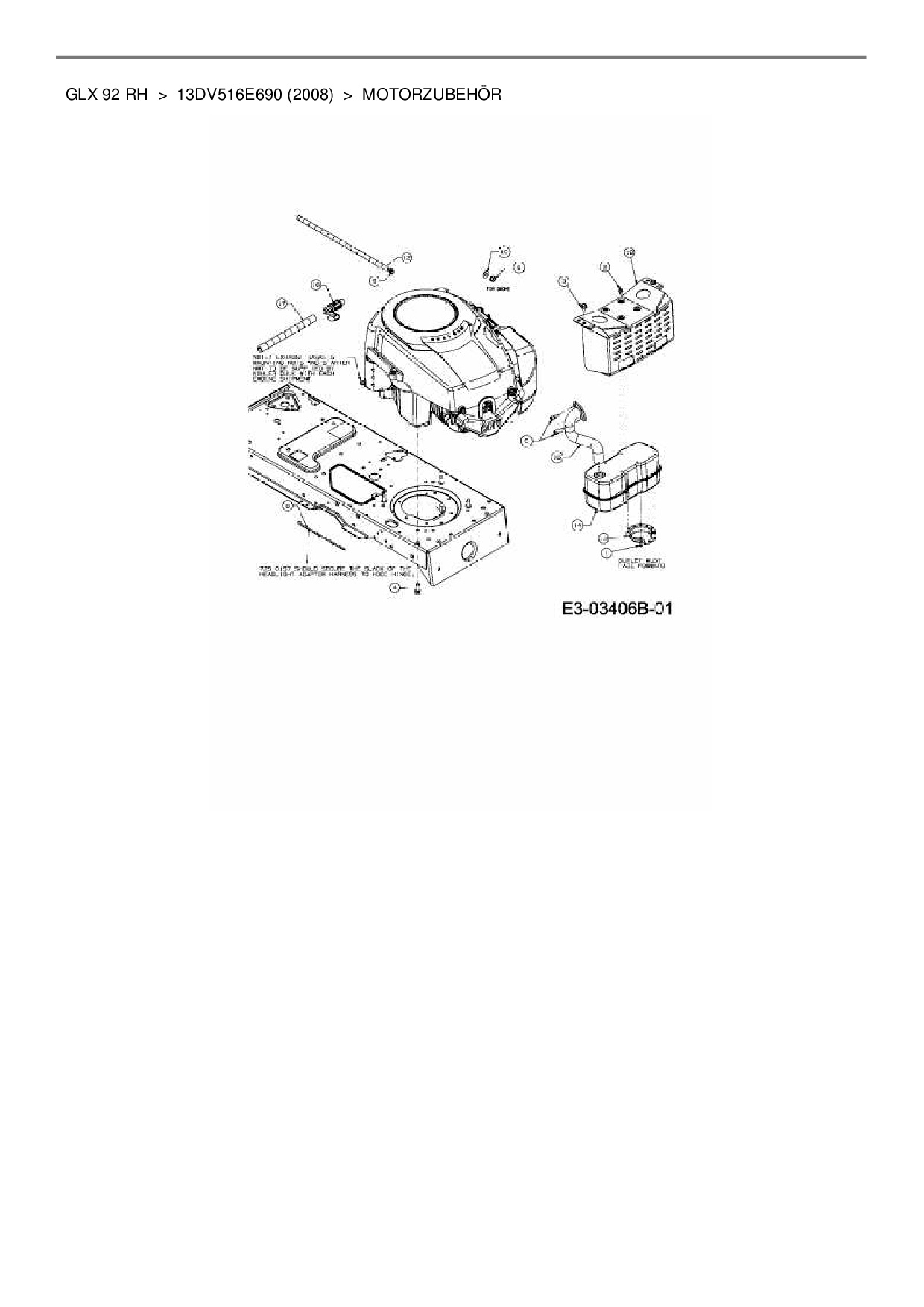 Zeichnung für Gutbrod Rasentraktor GLX 92 RH mit der Geräte-Artikelnr. 13DV516E690 ab Baujahr 2008: