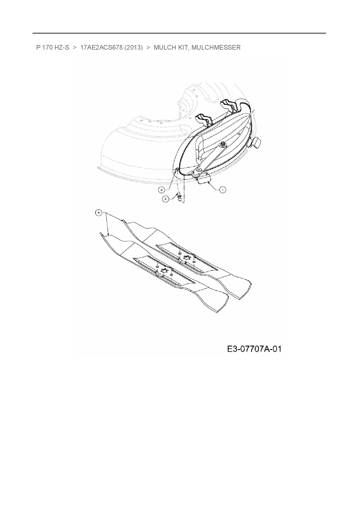Ersatzteile für Zero Turn MTD P 170 HZ-S aus der Zeichnung Mulch Kit, Mulchmesser: