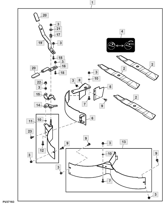 Ersatzteile für Rasentraktor X940 (PC13377) von John Deere aus der Zeichnung MulchControl™ System, 54HC in., Nachrüstsatz - ST905655: