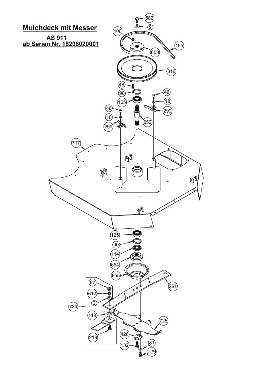 Hier finden Sie alle Ersatzteile von AS-Motor Aufsitzmäher AS 911, AS 915 Enduro ab FNr. 018214010030 aus dem Zeichnungsblatt Mulchdeck mit Messer: