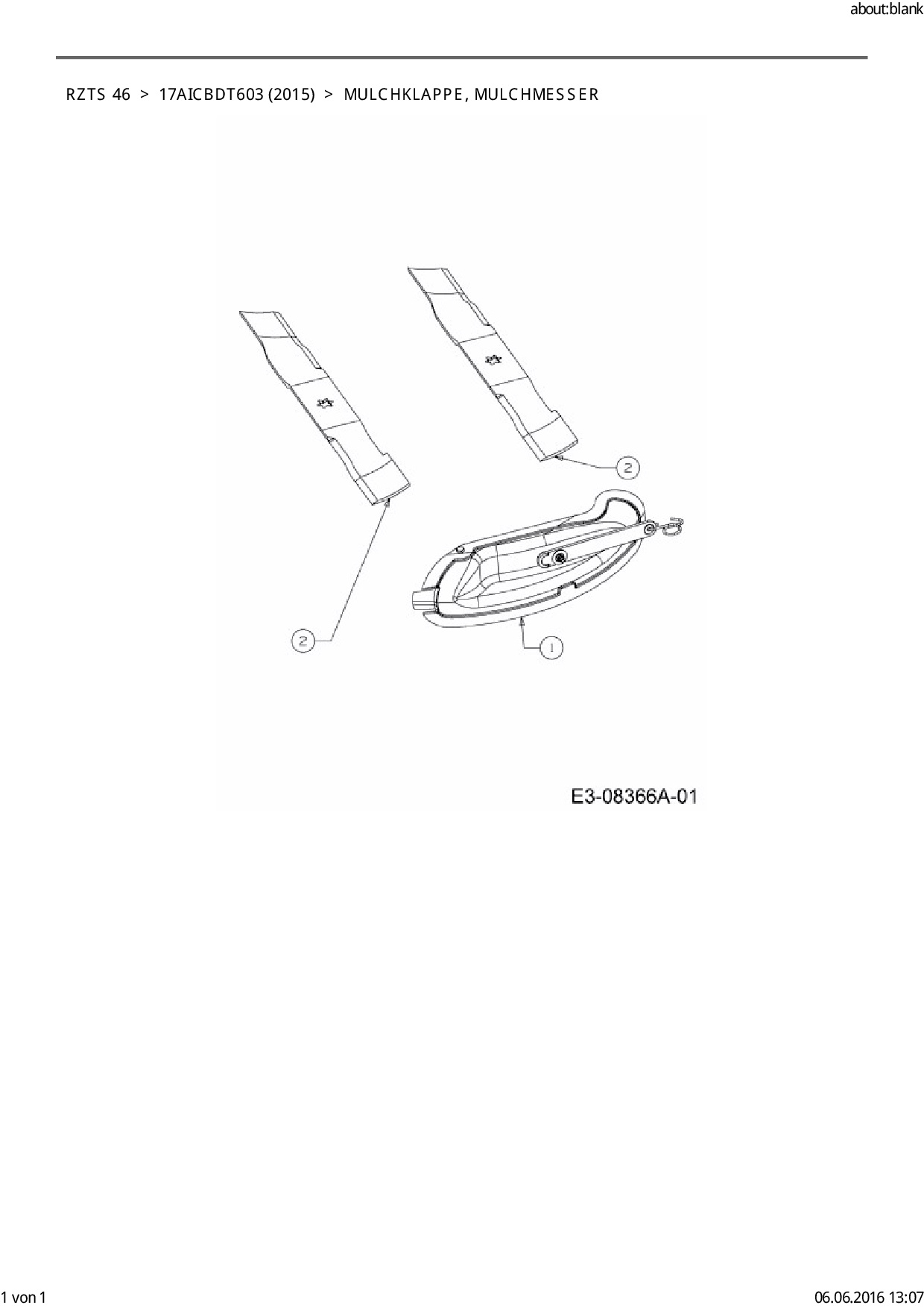 Download Ersatzteil-Zeichnung Cub Cadet RZTS 46 Zeichnung Mulchklappe, Mulchmesser (PDF-Format)