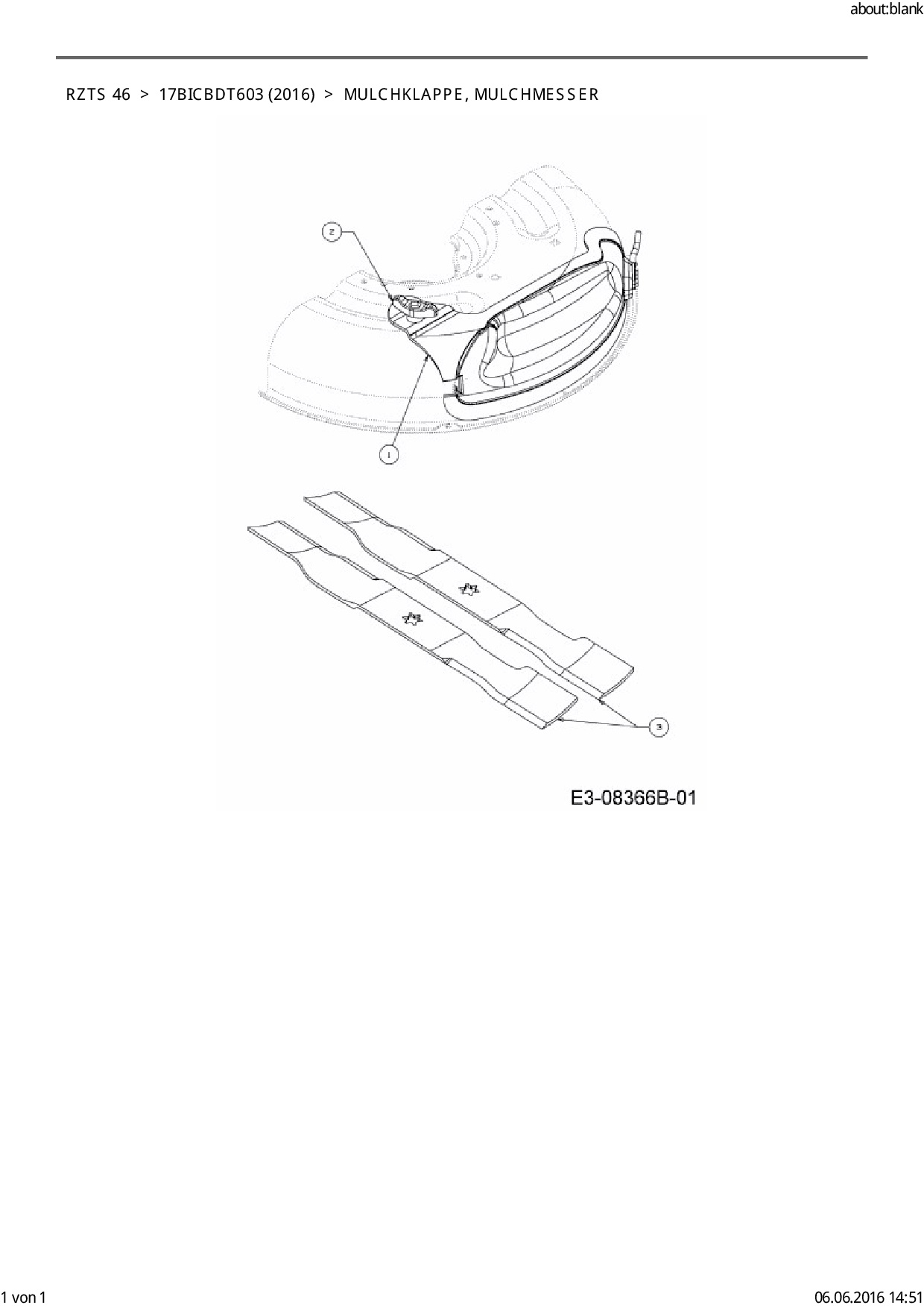 Ersatzteile für Zero Turn Cub Cadet RZTS 46 aus der Zeichnung Mulchklappe, Mulchmesser: