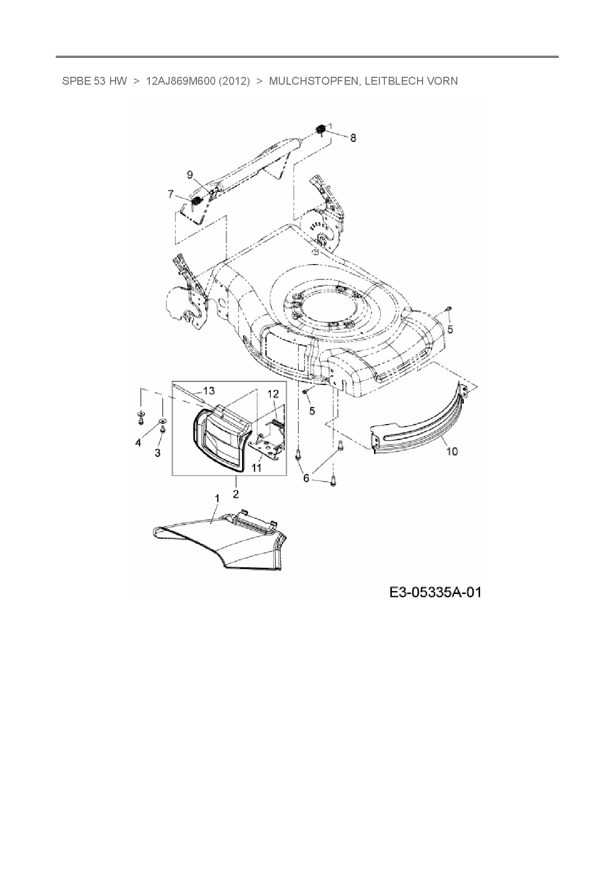 Ersatzteile für Motormäher mit Antrieb MTD SPBE 53 HW aus der Zeichnung Mulchstopfen, Leitblech vorn: