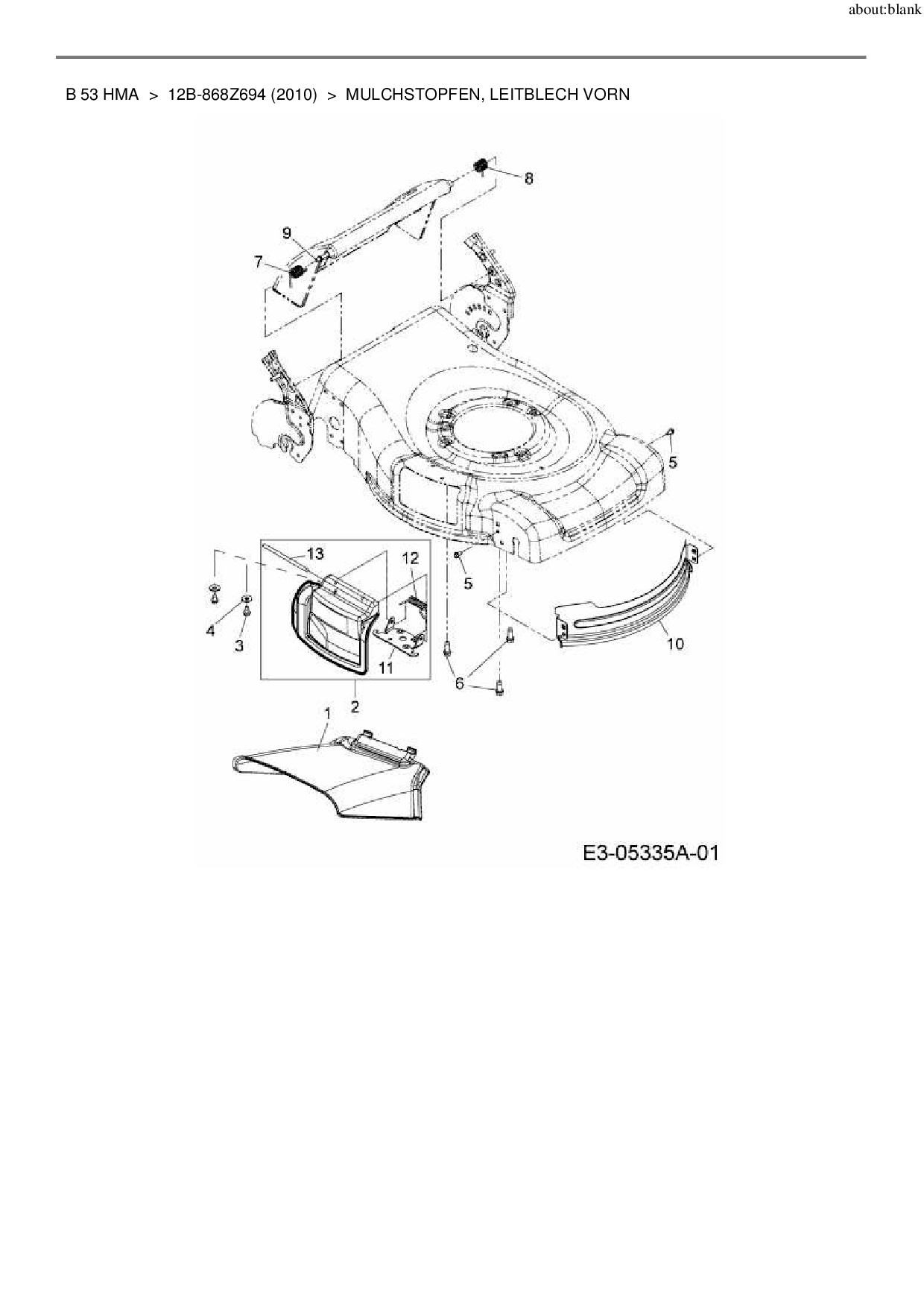 Ersatzteile für Motormäher mit Antrieb Lux Tools B 53 HMA aus der Zeichnung Mulchstopfen, Leitblech vorn: