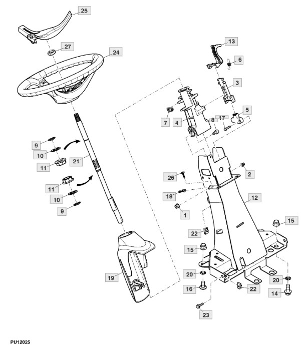 Ersatzteile für Rasentraktor X950R (PC11965) von John Deere aus der Zeichnung Neigungsverstellbare Lenksäule - ST761661: