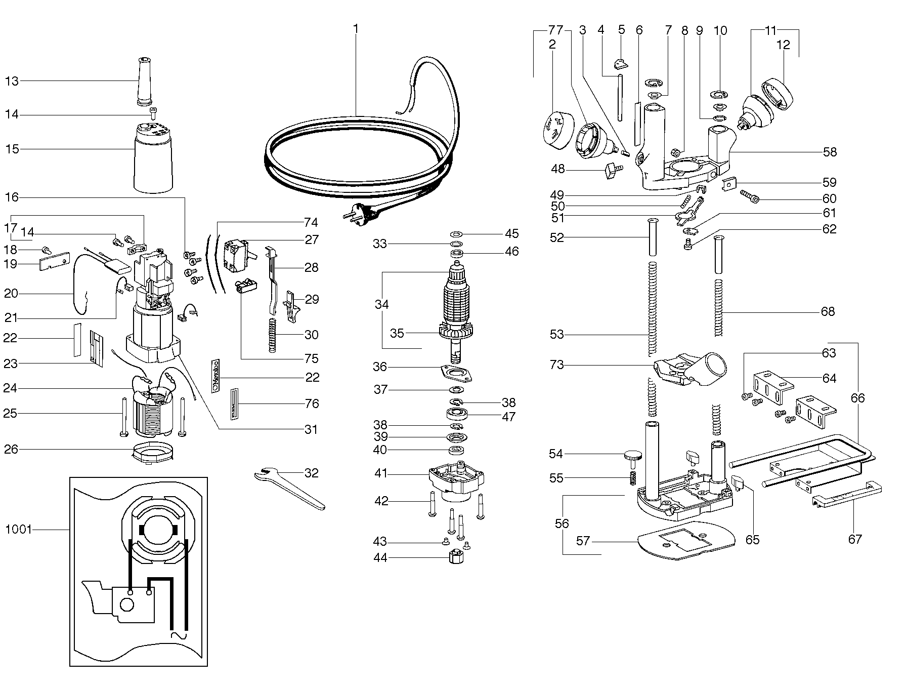 Ersatzteile für Metabo OF 528 Fräse Holz aus Zeichnung 1: