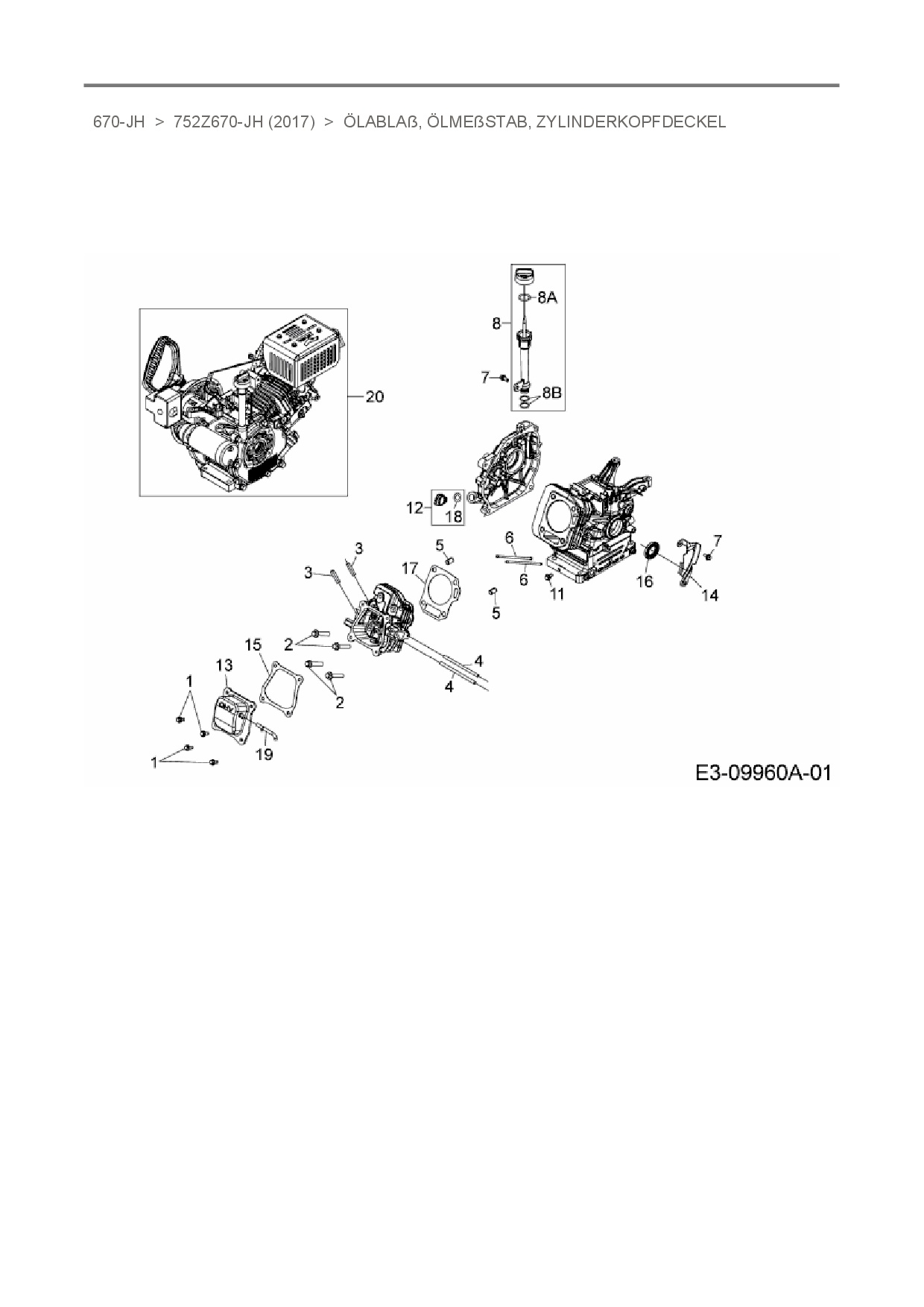 Ersatzteile für Horizontal MTD-Motoren 670-JH aus der Zeichnung Ölablaß, Ölmeßstab, Zylinderkopfdeckel: