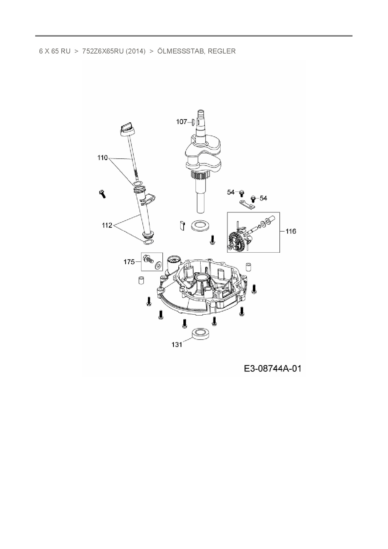 Ersatzteile für Vertikal MTD-Motoren 6 X 65 RU aus der Zeichnung Ölmessstab, Regler: