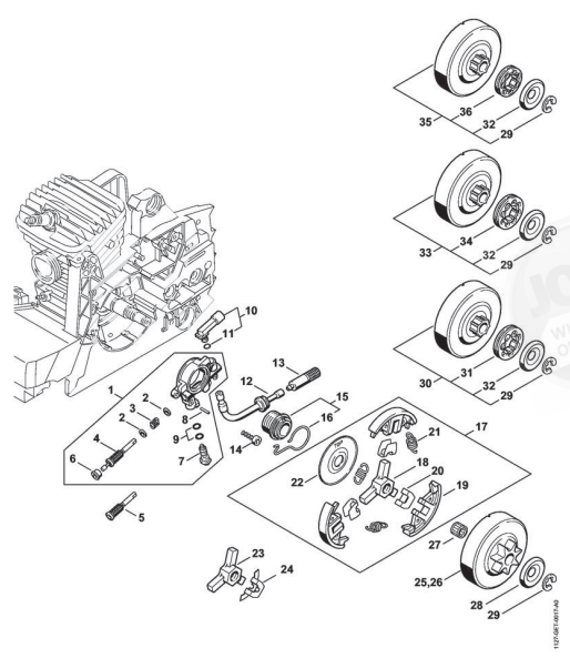 Hier finden Sie alle Ersatzteile von Stihl Benzin-Motorsägen MS 310 der Zeichnungsgruppe Ölpumpe, Kupplung: