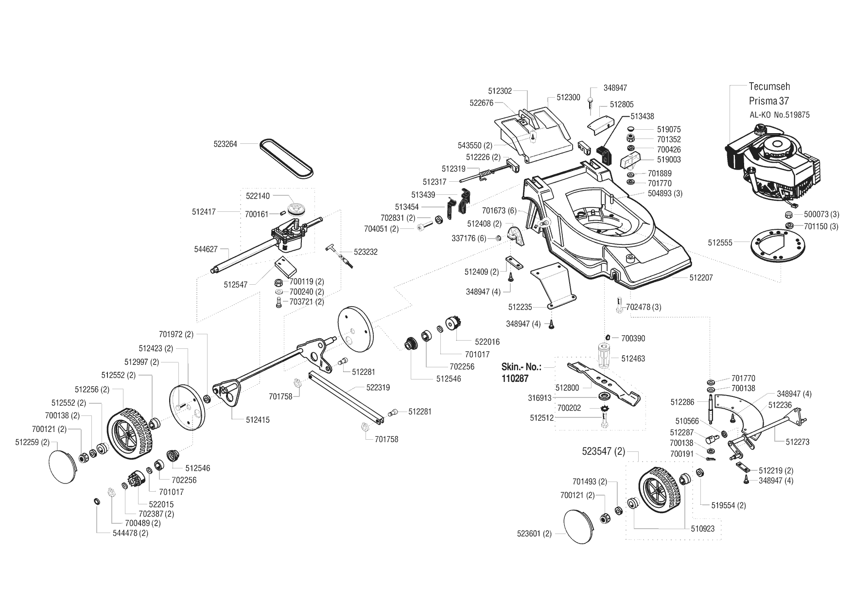 Zeichnungen von Ginge Benzinrasenmäher P 461 mit der Geräte-Artikelnr. 117274: