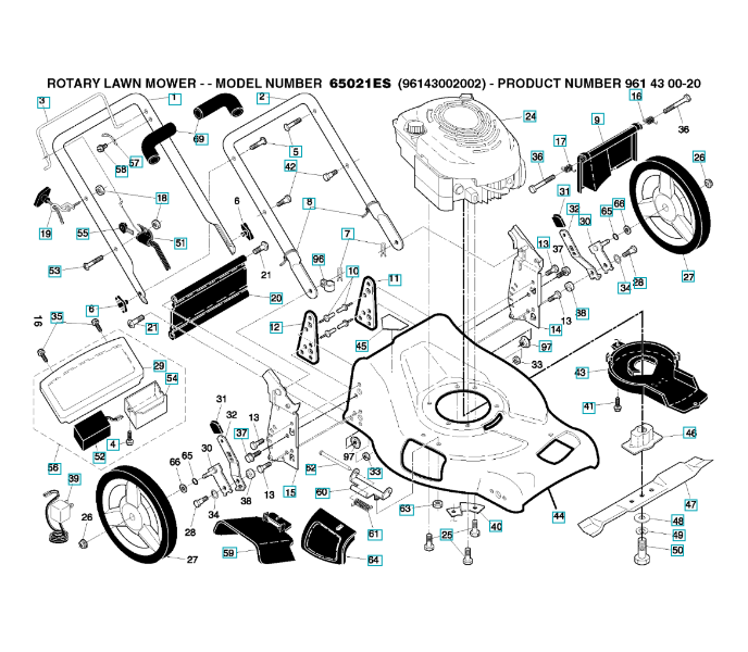 Folgende Ersatzteile für Husqvarna Rasenmäher private Nutzung 65021ES ( 96143002002, 2007-05 ) PRODUKT KOMPLETT (1) können Sie hier bestellen: