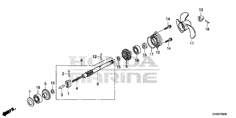 Ersatzteile für Honda Außenbordmotoren BF5DH LHND (LHND) Baugruppe PROPELLERWELLE/PROPELLER