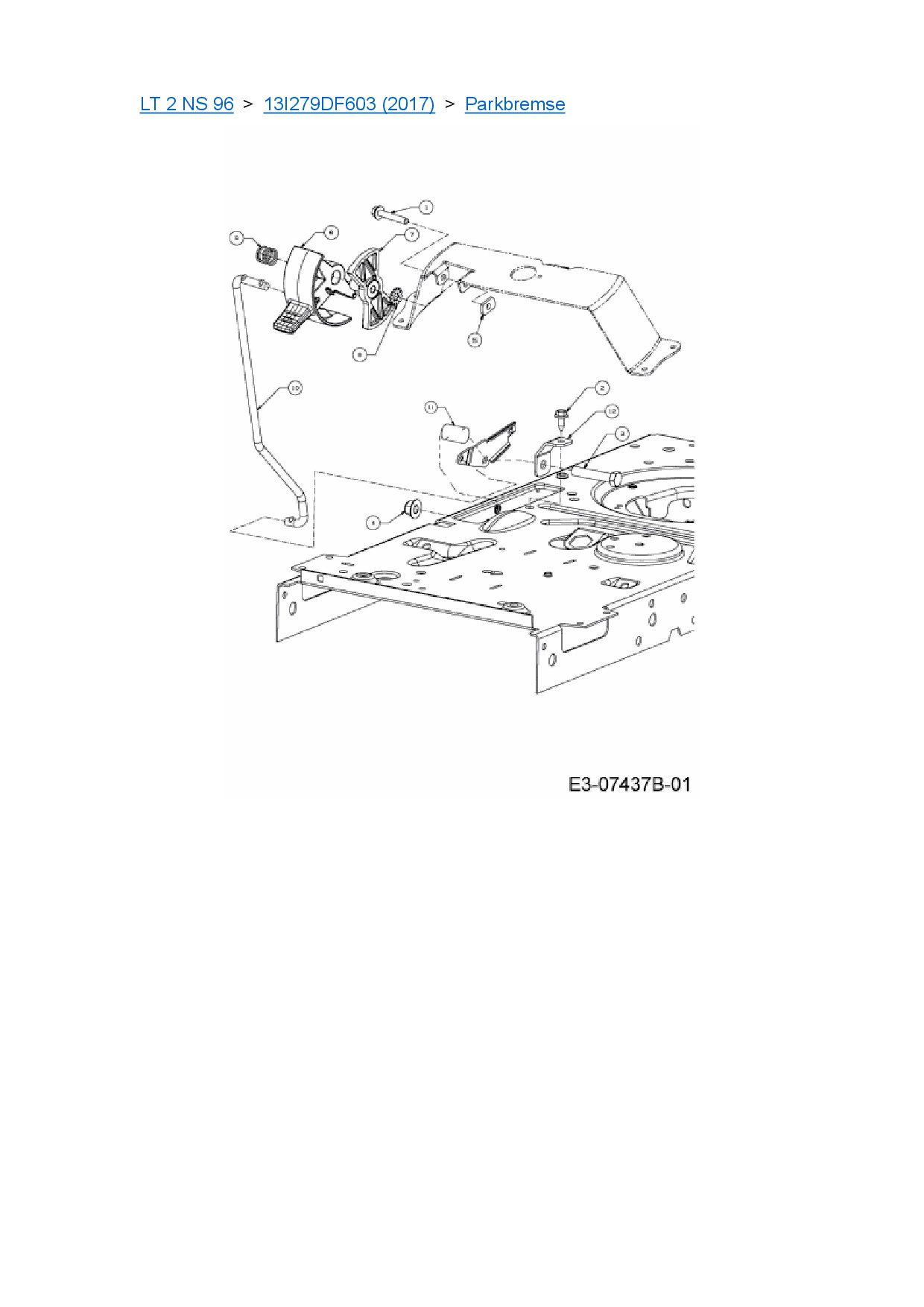 Ersatzteile für Rasentraktor Cub Cadet LT 2 NS 96 aus der Zeichnung Parkbremse: