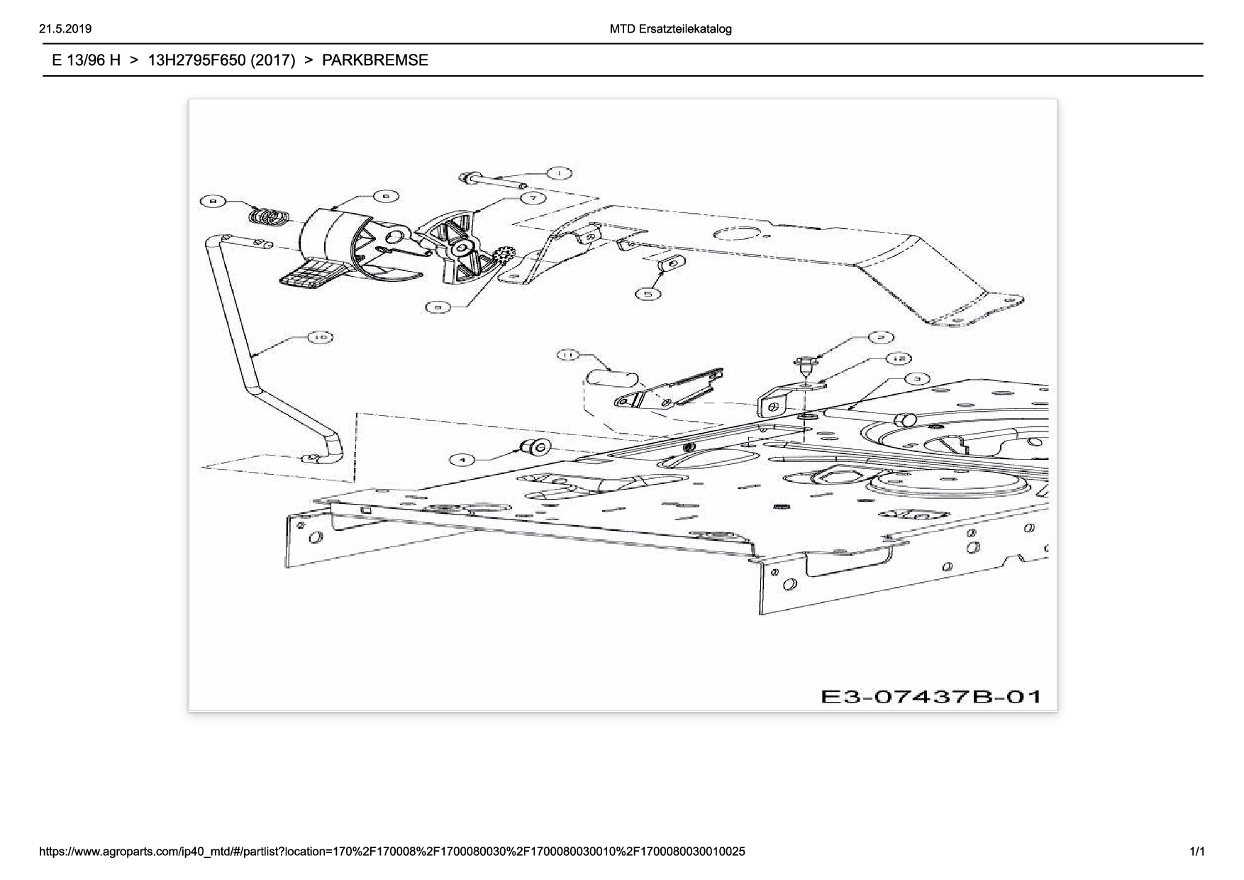 Ersatzteile für Rasentraktor Wolf-Garten Expert E 13/96 H aus der Zeichnung Parkbremse: