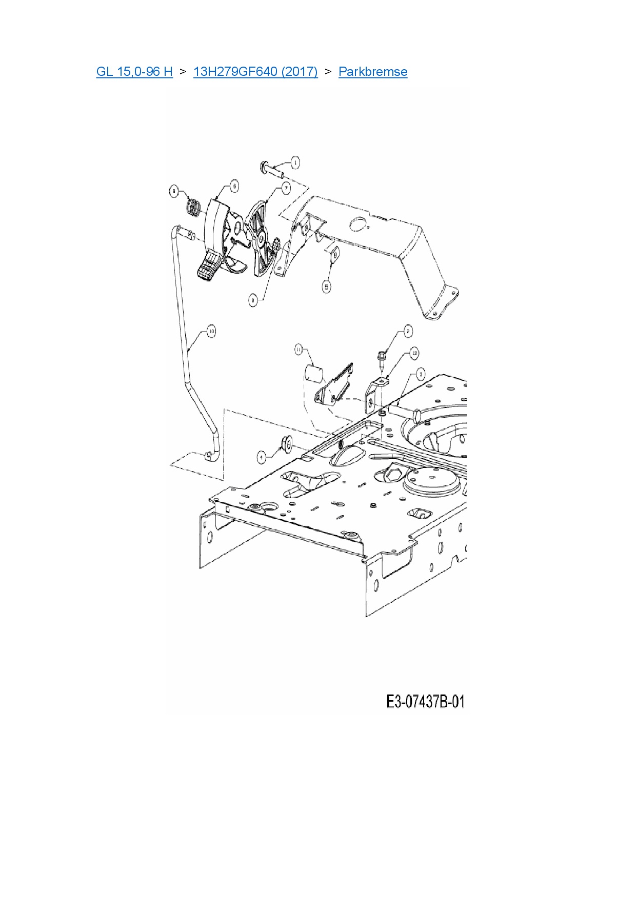 Ersatzteile für Rasentraktor Gartenland GL 15,0-96 H aus der Zeichnung Parkbremse: