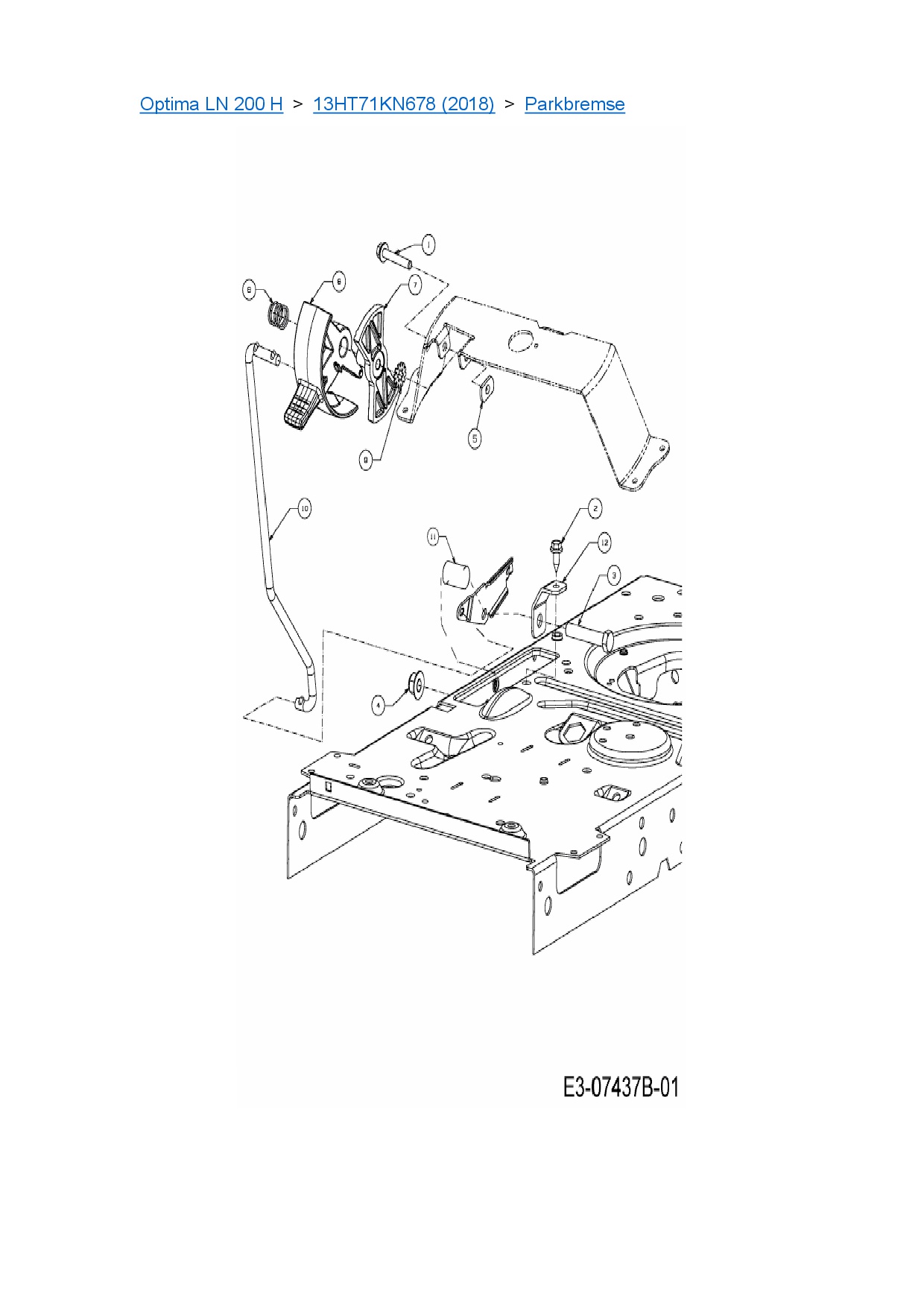 Ersatzteile für Rasentraktor MTD Optima LN 200 H aus der Zeichnung Parkbremse: